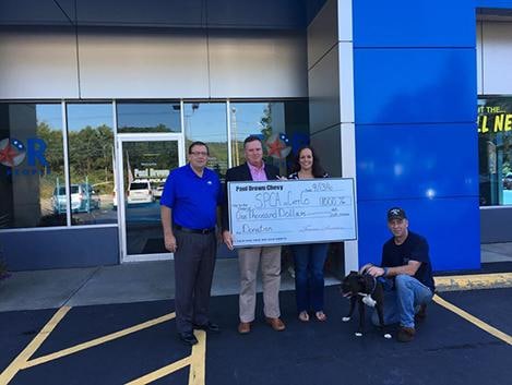 | SEPTEMBER 2016 Paul Brown cares about our four legged friends. Donation to our local SPCA. Pictured Rod Pullins, Terry Brairton from Paul Brown Chevy along with Jenna Holloway, Joe and Comet from SPCA. |