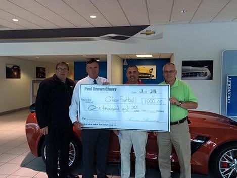 | JUNE 2016 Go Huskies!! Paul Brown Chevy is proud to support Phil Vechio and Olean Huskies football team. Pictured Rod Pullins and Terry Brairton with Coach Vechio and AD Paul Ksionzyk. |