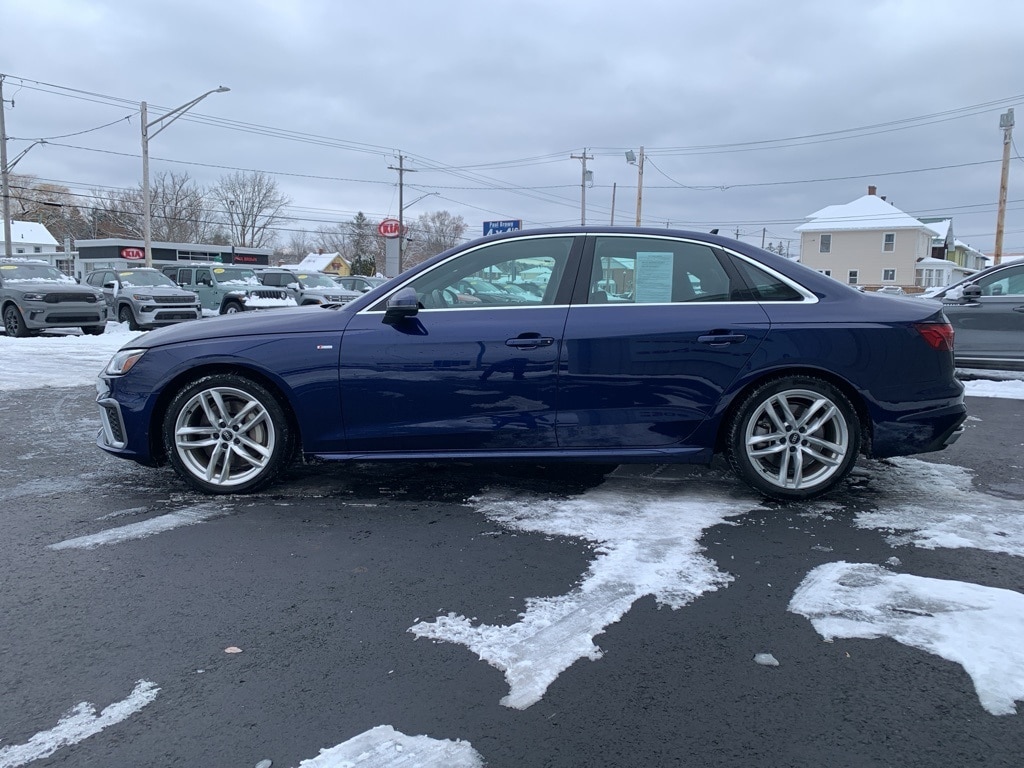 Priced below KBB Fair Purchase Price! CARFAX One-Owner. 2024 Audi A4 45 S line Premium Plus quattro 4D Sedan Navarra Blue Metallic 2.0L 4-Cylinder TFSI quattro 7-Speed Automatic S tronic Balance of new car warranty., 10 Speakers, Audi smartphone interface (Apple CarPlay/Android Auto), Emergency communication system: Audi connect CARE, Exterior Parking Camera Rear, Front dual zone A/C, Front fog lights, Fully automatic headlights, Garage door transmitter: HomeLink, Heated door mirrors, Heated Front Sport Seats, Heated steering wheel, Leather Seating Surfaces, Low tire pressure warning, Power door mirrors, Power driver seat, Power moonroof, Power passenger seat, Power windows, Rain sensing wipers, Rear air conditioning, Rear window defroster, Remote keyless entry, Steering wheel mounted audio controls, Traction control, Wheels: 18" 5-Double-Spoke Design. 24/32 City/Highway MPG Final Price may require vehicle trade in and Paul Brown trade assistance, see website for details. For a hassle free purchase experience, reach out to the Sales team at Paul Brown Chevy at (716) 244-6077. Conveniently located on Route 16 North, Olean NY 14760. We are worth the trip! Travel from over 75 miles away and don't purchase we will supply you with $25 gas card! Paul Brown Chevy, A Dealer For the People! Our For The People Pricing means ZERO price increases at Paul Brown.