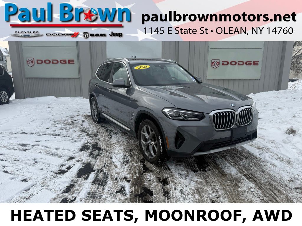 Priced below KBB Fair Purchase Price! CARFAX One-Owner. We want your trade, ask about Paul Brown Trade discount available to all customers with a trade in! 2024 BMW X3 xDrive30i 4D Sport Utility Gray I4 AWD 8-Speed Automatic Sport 21/28 City/Highway MPG 12 Speakers, Apple CarPlay & Android Auto Compatibility, BMW Assist eCall, Connected Package Pro, Emergency communication system: BMW Assist eCall, Enhanced USB & Bluetooth w/Smartphone Integration, Exterior Parking Camera Rear, Front dual zone A/C, Fully automatic headlights, Garage door transmitter, Heated door mirrors, Low tire pressure warning, Memory seat, Navigation, Panoramic Moonroof, Perforated SensaTec Upholstery, Power door mirrors, Power driver seat, Power Front Seats, Power Liftgate, Power passenger seat, Power windows, Rain sensing wipers, Rear air conditioning, Remote keyless entry, Speed control, Wheels: 19" x 7.5" Y-Spoke (Style 693), WiFi Hotspot. For a hassle free purchase experience, reach out to the Sales team at Paul Brown Motors at (585) 376-5057. Conveniently located on Route 16 North, Olean NY 14760. We are worth the trip! Travel from over 75 miles away and don't purchase we will supply you with $25 gas card! Paul Brown Motors, A Dealer For the People!