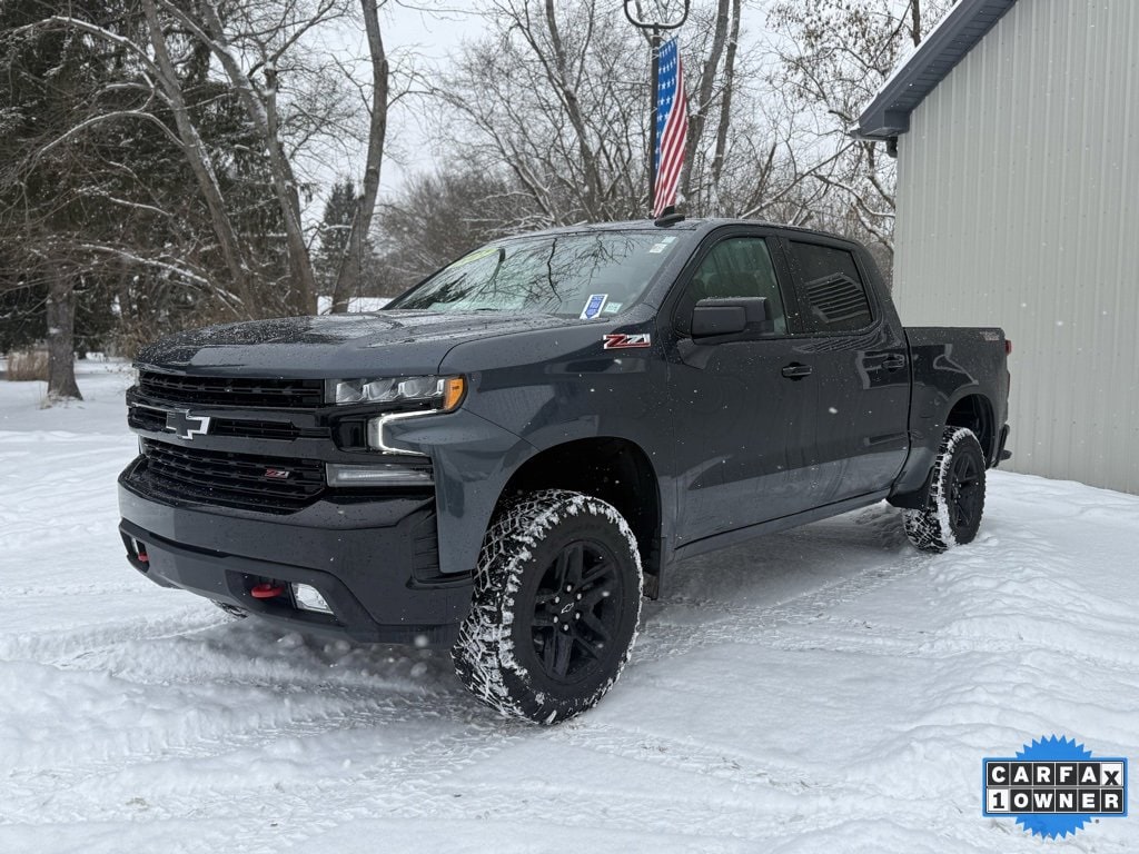 Priced below KBB Fair Purchase Price! CARFAX One-Owner. Clean CARFAX. 2021 Chevrolet Silverado 1500 LT Trail Boss 4D Crew Cab Shadow Gray Metallic EcoTec3 5.3L V8 10-Speed Automatic 4WD Odometer is 2923 miles below market average! 10-Way Power Driver Seat w/Lumbar, 12-Volt Rear Auxiliary Power Outlet, 2 USB Ports (First Row), 4G LTE Wi-Fi Hot Spot Capable, Apple CarPlay/Android Auto, Auxiliary External Transmission Oil Cooler, Chevrolet Connected Access Capable, Cloth Rear Seat w/Storage Package, Cloth Seat Trim, EZ Lift Power Lock & Release Tailgate, Front dual zone A/C, Fully automatic headlights, Heated door mirrors, Heated front seats, Heated Steering Wheel, Heavy-Duty Air Filter, Hill Descent Control, Hitch Guidance, Integrated Trailer Brake Controller, Keyless Open & Start, Low tire pressure warning, Off-Road Suspension w/2 Lift, Power door mirrors, Premium audio system: Chevrolet Infotainment 3, Rear Dual USB Charging-Only Ports, Rear Vision Camera, Rear window defroster, SiriusXM Radio, Trailering Package, Wheels: 18 x 8.5 Black Painted Aluminum. Final Price may require vehicle trade in and Paul Brown trade assistance , see website for details. For a hassle free purchase experience, reach out to the Sales team at Paul Brown Chevy at (716) 244-6077. Conveniently located on Route 16 North, Olean NY 14760. We are worth the trip! Travel from over 75 miles away and don't purchase we will supply you with $25 gas card! Paul Brown Chevy, A Dealer For the People!