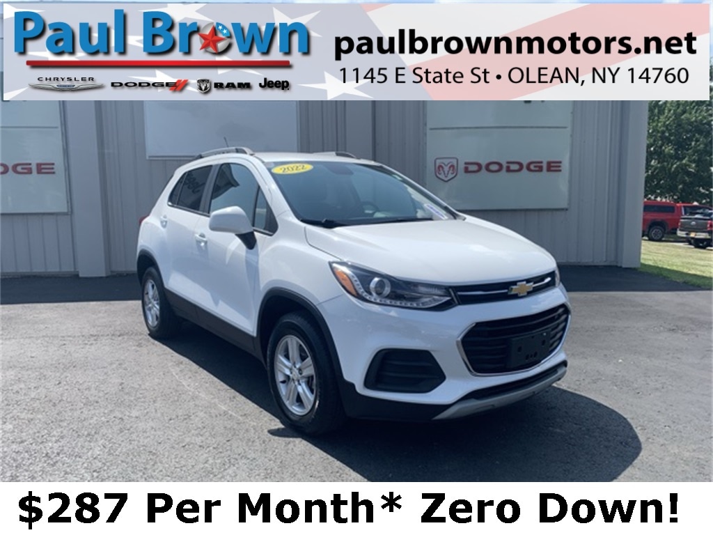 Priced below KBB Fair Purchase Price! Clean CARFAX. 2022 Chevrolet Trax LT 4D Sport Utility Summit White Turbo 1.4L VVT DOHC 4-Cylinder DI SIDI AWD 6-Speed Automatic *$287 per month / Zero cash or trade down / tax not included / 84 months and must qualify for top tier, 2 USB Ports w/Auxiliary Input Jack, 6-Speaker Audio System Feature, 6-Way Power Driver Seat Adjuster, Apple CarPlay/Android Auto, Deluxe Cloth/Leatherette Seat Trim, Emergency communication system: OnStar and Chevrolet connected services capable, Exterior Parking Camera Rear, Fully automatic headlights, Heated door mirrors, Keyless Open, Keyless Start, Low tire pressure warning, Power door mirrors, Premium audio system: Chevrolet Infotainment 3, Radio: Chevrolet Infotainment 3 System, SiriusXM Radio. 23/30 City/Highway MPG Final Price may require vehicle trade in and Paul Brown trade assistance , see website for details. For a hassle free purchase experience, reach out to the Sales team at Paul Brown Chevy at (716) 244-6077. Conveniently located on Route 16 North, Olean NY 14760. We are worth the trip! Travel from over 75 miles away and don't purchase we will supply you with $25 gas card! Paul Brown Chevy, A Dealer For the People! Our For The People Pricing means ZERO price increases at Paul Brown.