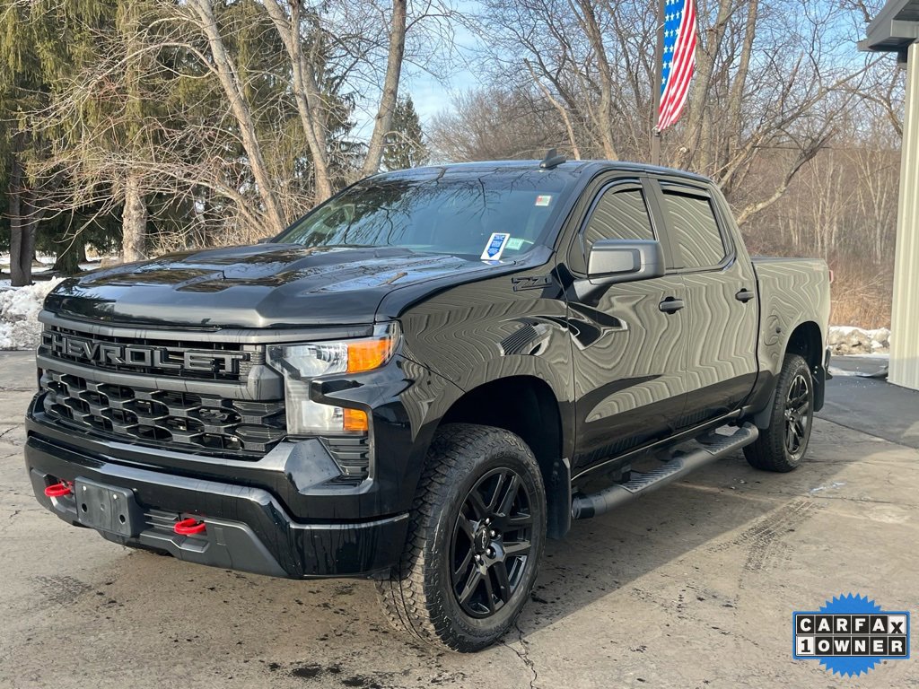 Priced below KBB Fair Purchase Price! CARFAX One-Owner. Clean CARFAX. 2023 Chevrolet Silverado 1500 Custom Trail Boss 4D Crew Cab Black 2.7L Turbo 8-Speed Automatic 4WD 120-Volt Bed Mounted Power Outlet, 120-Volt Instrument Panel Power Outlet, 2.7L Blackout Package, 4 Black Round Assist Steps (LPO), Air Conditioning, Apple CarPlay/Android Auto, Auto-Locking Rear Differential, Automatic Emergency Braking, Bluetooth® For Phone, Chevrolet Connected Access Capable, Cloth Seat Trim, EZ Lift Power Lock & Release Tailgate, Following Distance Indicator, Forward Collision Alert, Front Pedestrian Braking, Fully automatic headlights, HD Rear Vision Camera, Heated door mirrors, Heavy-Duty Air Filter, Hill Descent Control, Hitch Guidance, Lane Keep Assist w/Lane Departure Warning, Low tire pressure warning, OnStar & Chevrolet Connected Services Capable, Power door mirrors, Power driver seat, Premium audio system: Chevrolet Infotainment 3, Rear window defroster, Suspension Package, Trailering Package, Wheels: 20 x 9 High Gloss Black Painted Alum, Wi-Fi Hot Spot Capable, Wireless Phone Projection. Final Price may require vehicle trade in and Paul Brown trade assistance , see website for details. For a hassle free purchase experience, reach out to the Sales team at Paul Brown Chevy at (716) 244-6077. Conveniently located on Route 16 North, Olean NY 14760. We are worth the trip! Travel from over 75 miles away and don't purchase we will supply you with $25 gas card! Paul Brown Chevy, A Dealer For the People!