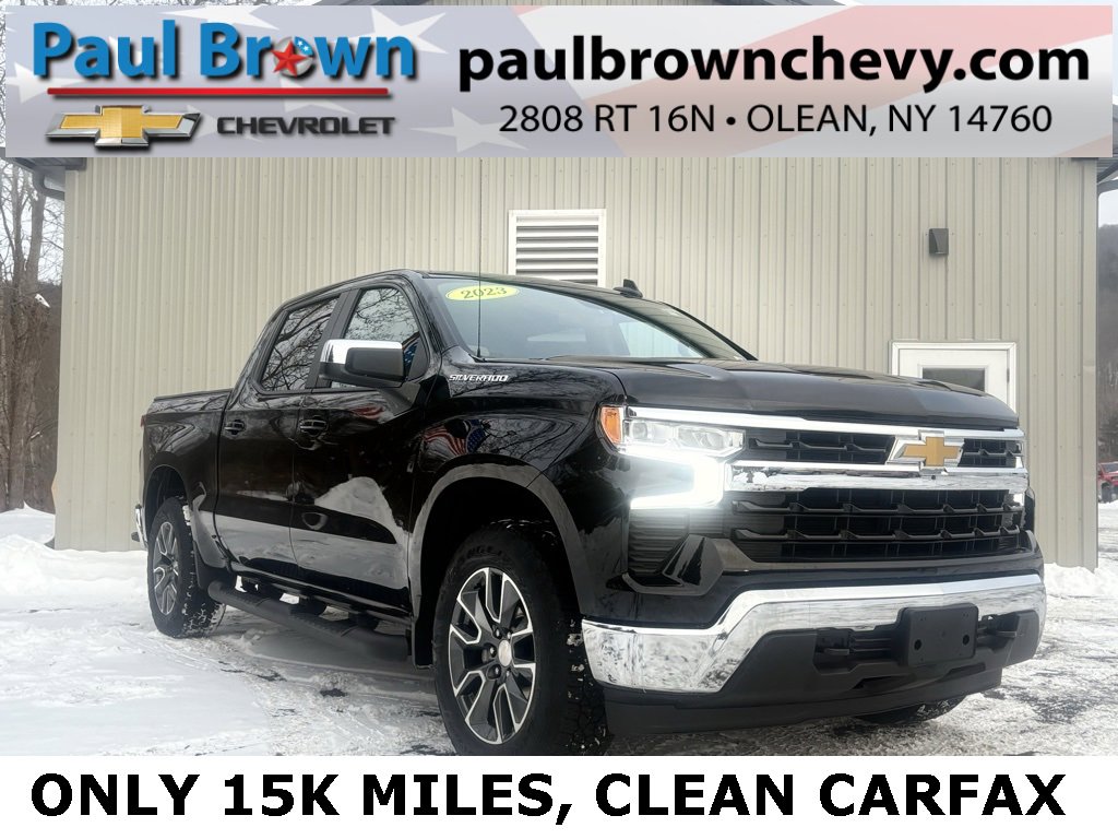 Priced below KBB Fair Purchase Price! CARFAX One-Owner. Clean CARFAX. 2023 Chevrolet Silverado 1500 LT 4D Crew Cab Black 2.7L Turbo 8-Speed Automatic 4WD Odometer is 14913 miles below market average! 10-Way Power Driver Seat w/Lumbar, 12.3 Multicolor Reconfigurable Digital Display, 120-Volt Bed Mounted Power Outlet, 120-Volt Instrument Panel Power Outlet, Auto-Locking Rear Differential, Automatic Emergency Braking, Bluetooth® For Phone, Chevrolet Connected Access Capable, Cloth Seat Trim, Following Distance Indicator, Forward Collision Alert, Front dual zone A/C, Front Pedestrian Braking, Fully automatic headlights, HD Rear Vision Camera, Heated door mirrors, Heated front seats, Heated Steering Wheel, Hitch Guidance, Keyless Open & Start, Lane Keep Assist w/Lane Departure Warning, Low tire pressure warning, Power door mirrors, Premium audio system: Chevrolet Infotainment 3 Premium, Rear window defroster, Remote keyless entry, Remote Vehicle Starter System, SiriusXM w/360L, Trailering Package, Wheels: 20 x 9 Painted Aluminum, Wi-Fi Hot Spot Capable, Wireless Phone Projection. Final Price may require vehicle trade in and Paul Brown trade assistance , see website for details. For a hassle free purchase experience, reach out to the Sales team at Paul Brown Chevy at (716) 244-6077. Conveniently located on Route 16 North, Olean NY 14760. We are worth the trip! Travel from over 75 miles away and don't purchase we will supply you with $25 gas card! Paul Brown Chevy, A Dealer For the People!