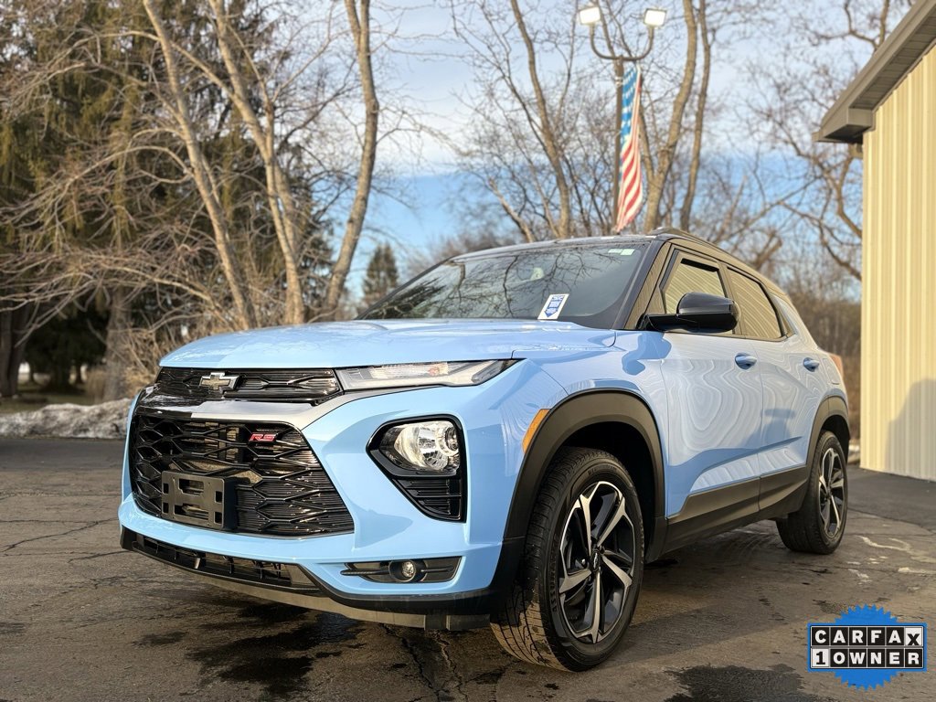 CARFAX One-Owner. Clean CARFAX. 2023 Chevrolet TrailBlazer RS 4D Sport Utility Fountain Blue 1.3L Ecotec Turbo DOHC SIDI w/VVT 9-Speed Automatic AWD 1 Type-A & 1 Type-C USB Charging-Only Ports, 120-Volt Power Outlet, 2-Way Power Driver Lumbar Seat Adjuster, 8-Way Power Driver Seat Adjuster, 8 Diagonal Color Touchscreen Display, Adaptive Cruise Control, Air Conditioning, Bose Premium 7-Speaker Audio System Feature, Cloth w/Leatherette Seat Trim, Convenience Package, Driver & Front Passenger Illuminated Vanity Mirrors, Driver Confidence Package, Dual-Pane Panoramic Power Sunroof, Emergency communication system: OnStar and Chevrolet connected services capable, Fully automatic headlights, HD Radio, HD Rear Vision Camera, Heated door mirrors, Heated front seats, Inside Rear-View Auto-Dimming Mirror, Lane Change Alert w/Side Blind Zone Alert, Low tire pressure warning, Memory Card Receptacle, Power door mirrors, Radio: Chevrolet Infotainment 3 Plus System, Rear Cross Traffic Alert, Rear Park Assist, Rear window defroster, Remote keyless entry, SiriusXM w/360L, Wheels: 18 High Gloss Black Machined Aluminum, Wireless Apple CarPlay/Android Auto. 26/30 City/Highway MPG Final Price may require vehicle trade in and Paul Brown trade assistance , see website for details. For a hassle free purchase experience, reach out to the Sales team at Paul Brown Chevy at (716) 244-6077. Conveniently located on Route 16 North, Olean NY 14760. We are worth the trip! Travel from over 75 miles away and don't purchase we will supply you with $25 gas card! Paul Brown Chevy, A Dealer For the People!