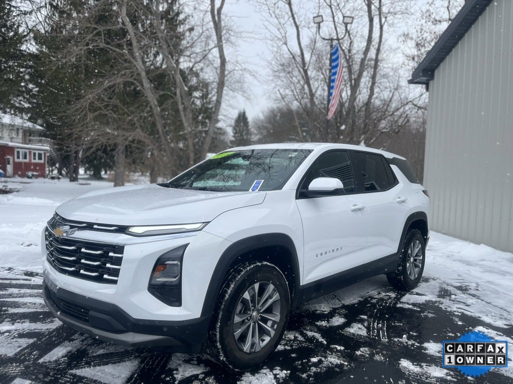 Priced below KBB Fair Purchase Price! CARFAX One-Owner. Clean CARFAX. 2025 Chevrolet Equinox LT 4D Sport Utility Summit White 1.5L DOHC 8-Speed Automatic AWD Air Conditioning, Cloth Seat Trim, Emergency communication system: OnStar and Chevrolet connected services capable, Fully automatic headlights, Heated door mirrors, Heated front seats, Heated steering wheel, Low tire pressure warning, Power door mirrors, Rear window defroster, Remote keyless entry, SiriusXM, Wheels: 17 Grazen Metallic Machined-Face Aluminum. 24/29 City/Highway MPG Final Price may require vehicle trade in and Paul Brown trade assistance , see website for details. For a hassle free purchase experience, reach out to the Sales team at Paul Brown Chevy at (716) 244-6077. Conveniently located on Route 16 North, Olean NY 14760. We are worth the trip! Travel from over 75 miles away and don't purchase we will supply you with $25 gas card! Paul Brown Chevy, A Dealer For the People!