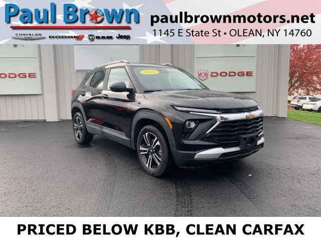 New Price! Priced below KBB Fair Purchase Price! CARFAX One-Owner. Clean CARFAX. 2025 Chevrolet TrailBlazer LT 4D Sport Utility Mosaic Black Metallic Odometer is 6164 miles below market average! 1.3L Ecotec Turbo DOHC SIDI w/VVT AWD 9-Speed Automatic Air Conditioning, Exterior Parking Camera Rear, Fully automatic headlights, Heated door mirrors, Low tire pressure warning, Power door mirrors, Rear window defroster, SiriusXM Trial Subscription, Wheels: 18" High Gloss Black Machined Aluminum. 26/29 City/Highway MPG Final Price may require vehicle trade in and Paul Brown trade assistance, see website for details. For a hassle free purchase experience, reach out to the Sales team at Paul Brown Motors at (585-376-5057). Conveniently located on E State Street, Olean NY 14760. We are worth the trip! Travel from over 75 miles away and don't purchase we will supply you with $25 gas card! Paul Brown Chevy, A Dealer For the People! Our For The People Pricing means ZERO price increases at Paul Brown.