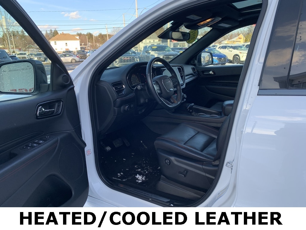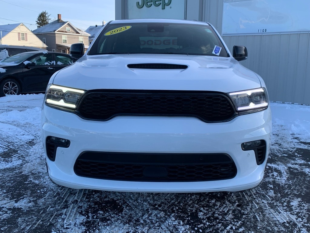 Priced below KBB Fair Purchase Price! CARFAX One-Owner. Clean CARFAX. 2023 Dodge Durango R/T Plus 4D Sport Utility White Knuckle Clearcoat Odometer is 14247 miles below market average! HEMI 5.7L V8 Multi Displacement VVT AWD 8-Speed Automatic 115V Auxiliary Power Outlet, Apple CarPlay/Android Auto, Class IV Receiver Hitch, Emergency communication system: SiriusXM Guardian, Front dual zone A/C, Fully automatic headlights, Garage door transmitter, Heated door mirrors, Heated Second Row Seats, Heated steering wheel, Leather Trimmed Bucket Seats, Low tire pressure warning, ParkView Rear Back-Up Camera, Power 8-Way Driver Memory 8-Way Passenger Seats, Power door mirrors, Power driver seat, Power Driver/Passenger 4-Way Lumbar Adjust, Power Liftgate, Power Sunroof, Rain sensing wipers, Rear air conditioning, Rear window defroster, Remote keyless entry, Trailer Brake Control, Ventilated Front Seats, Wheels: 20" x 8.0" Fine Silver. Final Price may require vehicle trade in and Paul Brown trade assistance, see website for details. For a hassle free purchase experience, reach out to the Sales team at Paul Brown Motors at (585-376-5057). Conveniently located on E State Street, Olean NY 14760. We are worth the trip! Travel from over 75 miles away and don't purchase we will supply you with $25 gas card! Paul Brown Chevy, A Dealer For the People! Our For The People Pricing means ZERO price increases at Paul Brown.
