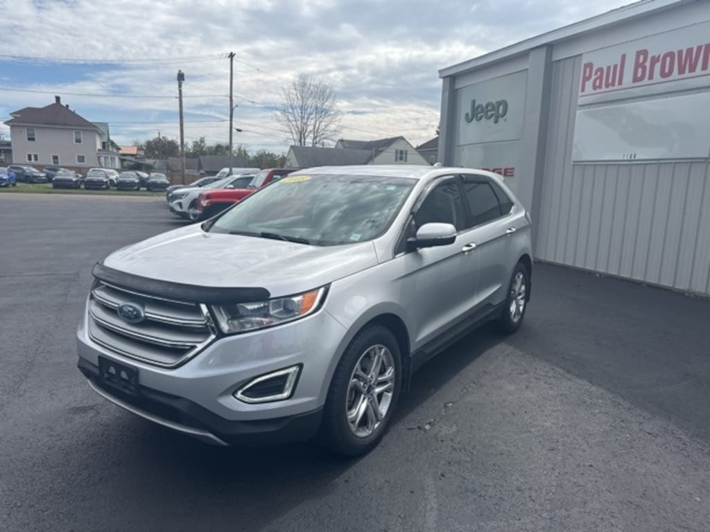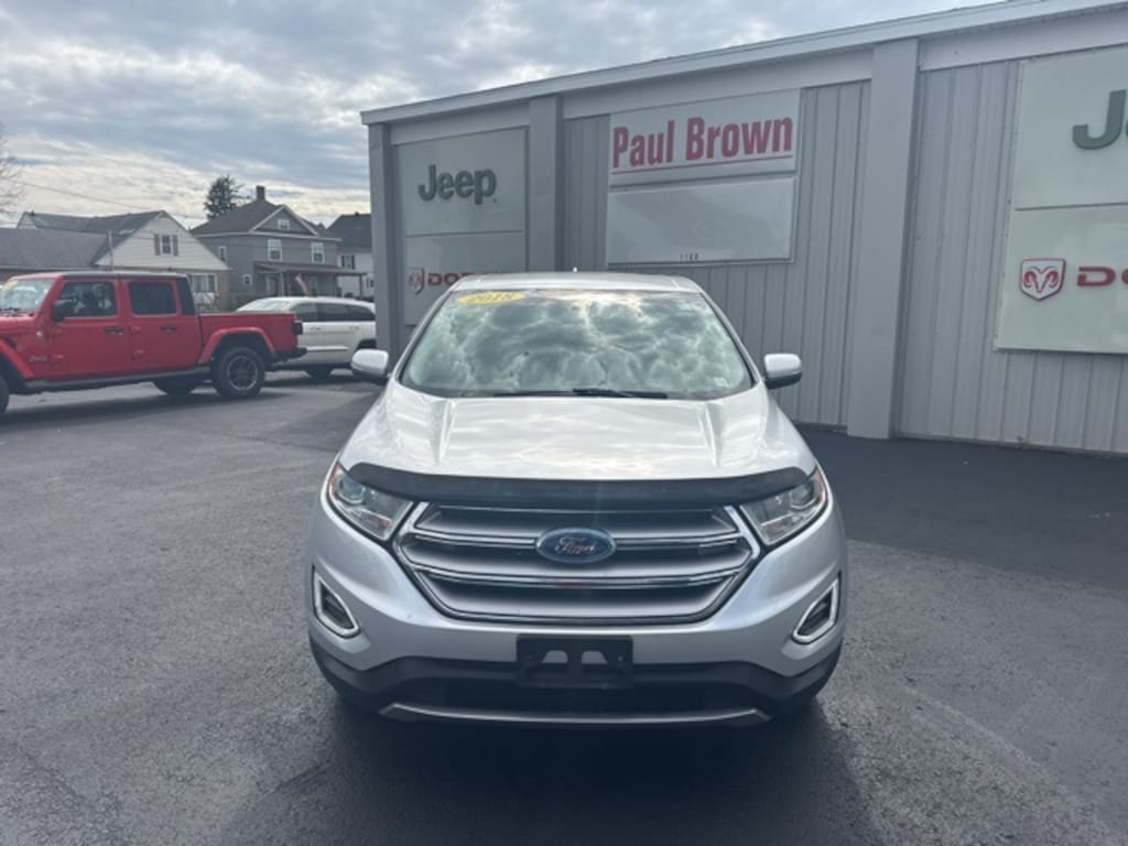 2018 Ford Edge Titanium 4D Sport Utility Ingot Silver Metallic Odometer is 3082 miles below market average! EcoBoost 2.0L I4 GTDi DOHC Turbocharged VCT AWD 6-Speed Automatic 12 Speakers, Apple CarPlay/Android Auto, Emergency communication system: SYNC 3 911 Assist, Exterior Parking Camera Rear, Front dual zone A/C, Fully automatic headlights, Heated door mirrors, Leather-Trimmed Heated Sport Bucket Seats, Low tire pressure warning, Memory seat, Power door mirrors, Power driver seat, Power Liftgate, Premium audio system: Sony, Rear Parking Sensors, Rear window defroster, SYNC 3 Communications & Entertainment System, Wheels: 19" Nickel-Painted Aluminum. 20/27 City/Highway MPG Final Price may require vehicle trade in and Paul Brown trade assistance , see website for details. For a hassle free purchase experience, reach out to the Sales team at Paul Brown Chevy at (716) 244-6077. Conveniently located on Route 16 North, Olean NY 14760. We are worth the trip! Travel from over 75 miles away and don't purchase we will supply you with $25 gas card! Paul Brown Chevy, A Dealer For the People! Our For The People Pricing means ZERO price increases at Paul Brown. Awards: