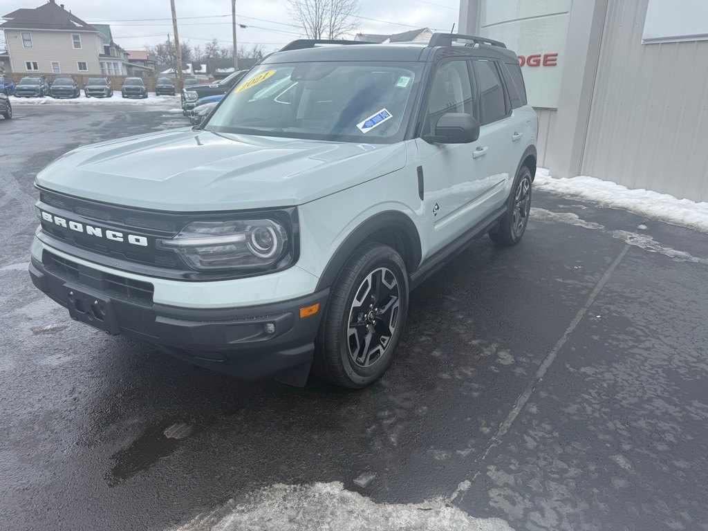 Priced below KBB Fair Purchase Price! 2021 Ford Bronco Sport Outer Banks 4D Sport Utility Cactus Odometer is 3649 miles below market average! 1.5L EcoBoost 4WD 8-Speed Automatic ABS brakes, Automatic temperature control, Class II Trailer Tow Package w/Trailer Sway Control, Emergency communication system: SYNC 3 911 Assist, Evasive Steering Assist, Exterior Parking Camera Rear, Ford Co-Pilot360 Assist+, Front dual zone A/C, Front fog lights, Heated door mirrors, Heated steering wheel, Intelligent Adaptive Cruise Control w/Stop & Go, Leather Trimmed Heated Sport Contour Bucket Seats, Low tire pressure warning, Navigation System/GPS/Navi, Power door mirrors, Power driver seat, Power Moonroof, Power passenger seat, Power windows, Rain sensing wipers, Remote keyless entry, Speed-Sensitive Wipers, SYNC 3 Communications & Entertainment System, SYNC 3/Apple CarPlay/Android Auto, Telescoping steering wheel, Tilt steering wheel, Traction control, Voice-Activated Touchscreen Navigation System, Wheels: 18" Ebony Black-Painted Aluminum. 25/28 City/Highway MPG Final Price may require vehicle trade in and Paul Brown trade assistance, see website for details. For a hassle free purchase experience, reach out to the Sales team at Paul Brown Motors at (585-376-5057). Conveniently located on E State Street, Olean NY 14760. We are worth the trip! Travel from over 75 miles away and don't purchase we will supply you with $25 gas card! Paul Brown Chevy, A Dealer For the People! Our For The People Pricing means ZERO price increases at Paul Brown. Awards: