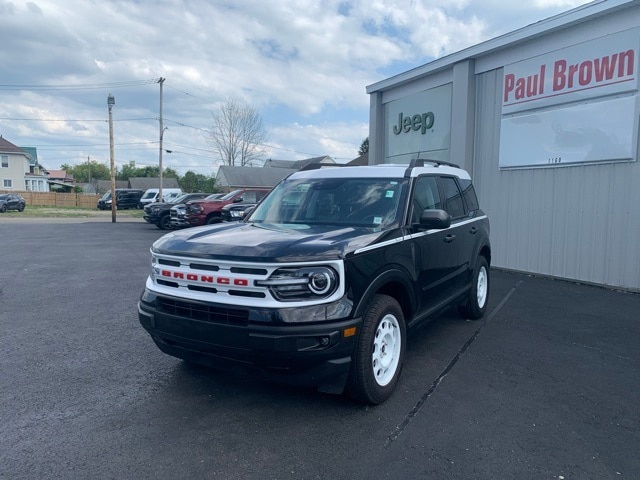 Priced below KBB Fair Purchase Price! CARFAX One-Owner. 2023 Ford Bronco Sport Heritage 4D Sport Utility Shadow Black Odometer is 11732 miles below market average! 1.5L EcoBoost 4WD 8-Speed Automatic *$419 per month /Zero cash or trade down / tax not included / 84 months and must qualify for top tier APR, Air Conditioning, Automatic temperature control, Electronic Stability Control, Emergency communication system: SYNC 3 911 Assist, Fully automatic headlights, Heated door mirrors, Low tire pressure warning, Plaid Cloth Front Bucket Seats, Power door mirrors, Rear window defroster, Remote keyless entry, SYNC 3 Communications & Entertainment System, SYNC 3/Apple CarPlay/Android Auto, Wheels: 17" Oxford White-Painted Aluminum. 25/28 City/Highway MPG Final Price may require vehicle trade in and Paul Brown trade assistance, see website for details. For a hassle free purchase experience, reach out to the Sales team at Paul Brown Chevy at (716) 244-6077. Conveniently located on Route 16 North, Olean NY 14760. We are worth the trip! Travel from over 75 miles away and don't purchase we will supply you with $25 gas card! Paul Brown Chevy, A Dealer For the People! Our For The People Pricing means ZERO price increases at Paul Brown.