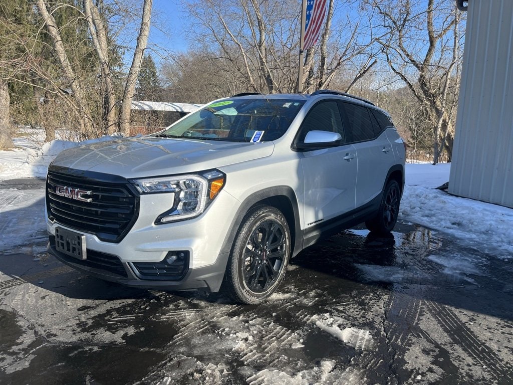 Priced below KBB Fair Purchase Price! CARFAX One-Owner. Clean CARFAX. 2022 GMC Terrain SLT 4D Sport Utility Quicksilver Metallic 1.5L DOHC 9-Speed Automatic AWD Odometer is 10227 miles below market average! 2 USB Data Ports, 6-Way Power Front Passenger Seat, 8-Way Power Driver Seat Adjuster, Adaptive Cruise Control, Bluetooth® For Phone, Emergency communication system: OnStar Guidance, Front dual zone A/C, Front Passenger 2-Way Power Lumbar, Fully automatic headlights, GMC Pro Safety Plus, HD Surround Vision, Heated door mirrors, Heated steering wheel, Lane Change Alert w/Side Blind Zone Alert, Lane Departure Warning System, Low tire pressure warning, Power door mirrors, Power Driver Lumbar Control, Power driver seat, Power Liftgate, Rear Cross-Traffic Alert, Rear Park Assist, Rear window defroster, Safety Alert Seat, SiriusXM Radio, Skyscape Power Sunroof w/Power Sunscreen, Wheels: 19 x 7.5 Gloss Black Painted Aluminum. 25/28 City/Highway MPG Final Price may require vehicle trade in and Paul Brown trade assistance , see website for details. For a hassle free purchase experience, reach out to the Sales team at Paul Brown Chevy at (716) 244-6077. Conveniently located on Route 16 North, Olean NY 14760. We are worth the trip! Travel from over 75 miles away and don't purchase we will supply you with $25 gas card! Paul Brown Chevy, A Dealer For the People!