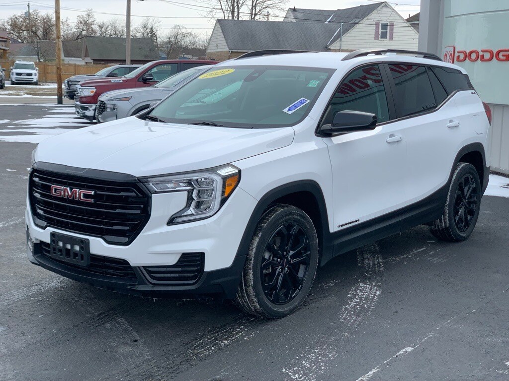 Priced below KBB Fair Purchase Price! CARFAX One-Owner. 2022 GMC Terrain SLE 4D Sport Utility Summit White Odometer is 11525 miles below market average! 1.5L DOHC AWD 9-Speed Automatic Balance of new car warranty., Local Trade, 110-Volt Power Outlet, 2 USB Data Ports w/SD Card Reader, 4.2" Multi-Color Driver Information Screen, 8-Way Power Driver Seat Adjuster, ABS brakes, Black GMC Center Caps w/Red GMC Lettering, Black Mirror Caps, Darkened Front Grille, Driver & Front Passenger Heated Seats, Driver Convenience Package, Dual-Zone Automatic Climate Control, Elevation Edition, Emergency communication system: OnStar Guidance, Fully automatic headlights, HD Rear Vision Camera, Heated door mirrors, Infotainment Package I, Lane Departure Warning System, Low tire pressure warning, Power door mirrors, Power Driver Lumbar Control, Power windows, Radio: GMC Infotainment Audio System w/Navigation, Rear window defroster, Remote keyless entry, Remote Start, Roof-Mounted Luggage Rack Side Rails, SiriusXM Radio, Speed control, Traction control, Wheels: 19" x 7.5" Gloss Black Painted Aluminum, Wireless Apple CarPlay/Wireless Android Auto. 25/28 City/Highway MPG Final Price may require vehicle trade in and Paul Brown trade assistance, see website for details. For a hassle free purchase experience, reach out to the Sales team at Paul Brown Motors at (585-376-5057). Conveniently located on E State Street, Olean NY 14760. We are worth the trip! Travel from over 75 miles away and don't purchase we will supply you with $25 gas card! Paul Brown Chevy, A Dealer For the People! Our For The People Pricing means ZERO price increases at Paul Brown.