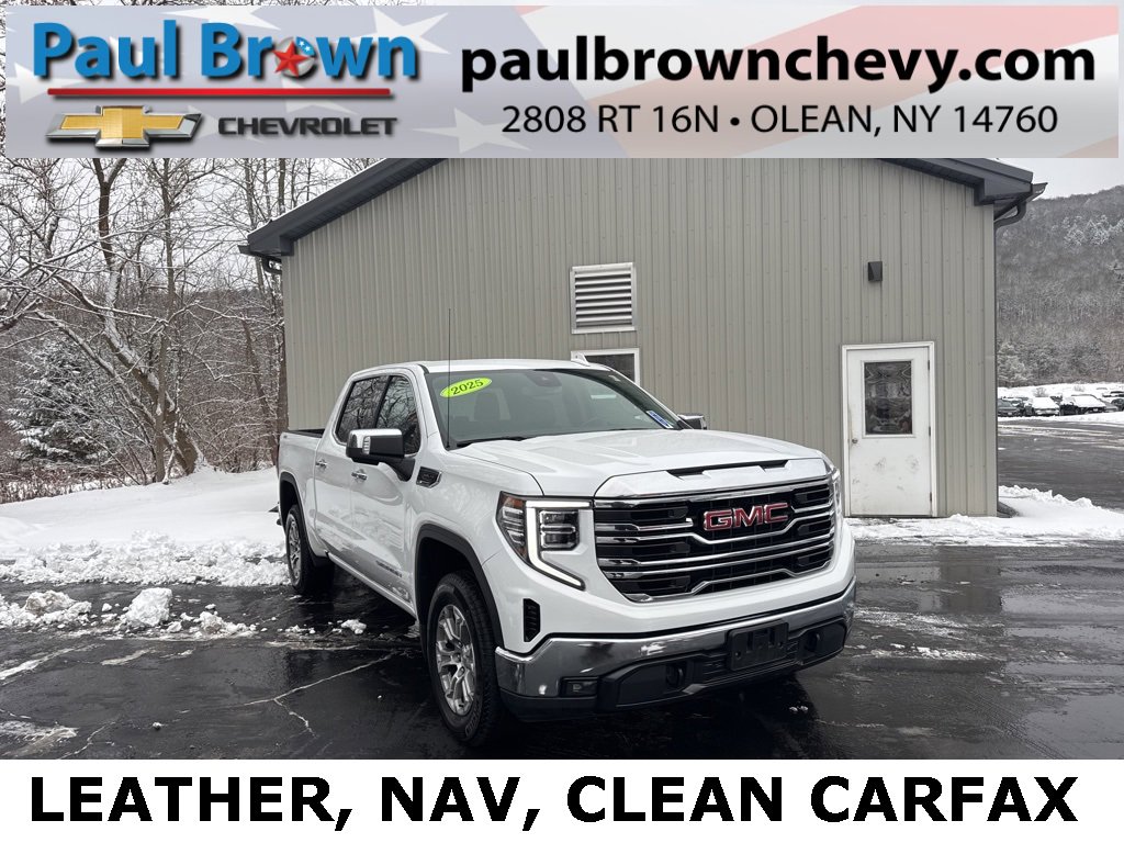 Priced below KBB Fair Purchase Price! CARFAX One-Owner. Clean CARFAX. 2025 GMC Sierra 1500 SLT 4D Crew Cab Summit White EcoTec3 5.3L V8 10-Speed Automatic 4WD Odometer is 3487 miles below market average! 10-Way Power Driver Seat Adjuster w/Lumbar, 10-Way Power Passenger Seat Adjuster w/Lumbar, 120-Volt Bed Mounted Power Outlet, 120-Volt Interior Power Outlet, 2 Charge/Data USB Ports, 2 Type-C Charge-Only Rear USB Ports, Auto-Locking Rear Differential, Automatic Emergency Braking, Emergency communication system: OnStar, Following Distance Indicator, Forward Collision Alert, Front dual zone A/C, Front Pedestrian Braking, Fully automatic headlights, Heated door mirrors, Heated front seats, Heated steering wheel, Hitch Guidance, Integrated Trailer Brake Controller, Low tire pressure warning, Navigation System, OnStar Services Capable, Perf Leather-Appointed Front Outboard Seat Trim, Power door mirrors, Power driver seat, Push Button Start, Rain sensing wipers, Rear window defroster, Remote keyless entry, Trailering Package, Wheels: 18 x 8.5 6-Spoke Machined Aluminum, Wi-Fi Hotspot Capable, Wireless Apple CarPlay/Wireless Android Auto. Final Price may require vehicle trade in and Paul Brown trade assistance , see website for details. For a hassle free purchase experience, reach out to the Sales team at Paul Brown Chevy at (716) 244-6077. Conveniently located on Route 16 North, Olean NY 14760. We are worth the trip! Travel from over 75 miles away and don't purchase we will supply you with $25 gas card! Paul Brown Chevy, A Dealer For the People!