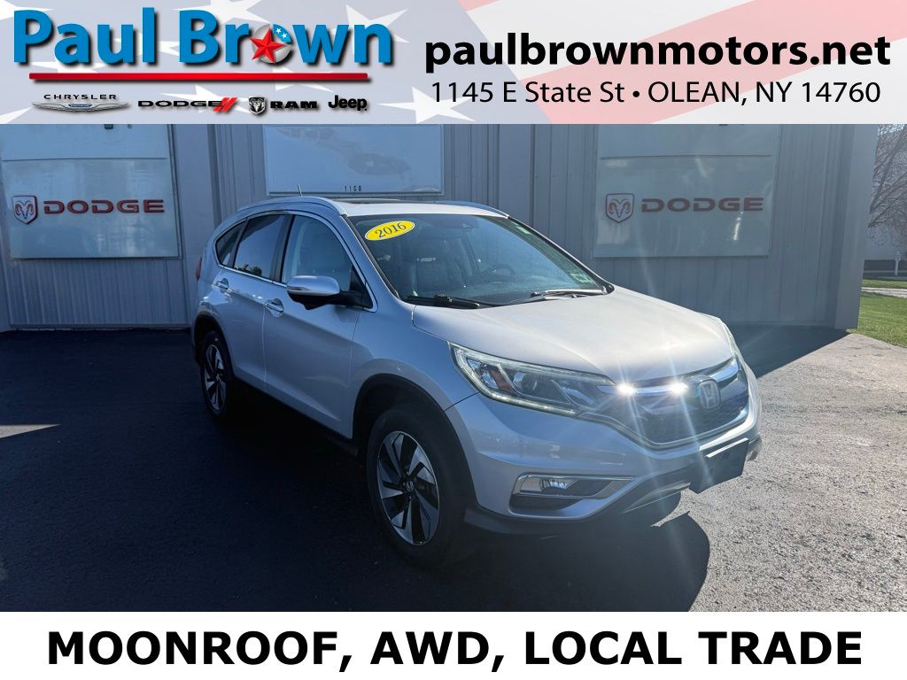 Priced below KBB Fair Purchase Price! We want your trade, ask about Paul Brown Trade discount available to all customers with a trade in! 2016 Honda CR-V Touring Odometer is 34720 miles below market average! 4D Sport Utility Modern Steel Metallic 2.4L I4 DOHC 16V i-VTEC AWD CVT 25/31 City/Highway MPG Exterior Parking Camera Rear, Front dual zone A/C, Garage door transmitter: HomeLink, Heated door mirrors, Heated front seats, Leather Seat Trim, Low tire pressure warning, Memory seat, Power door mirrors, Power driver seat, Power Liftgate, Power moonroof, Rear window defroster. For a hassle free purchase experience, reach out to the Sales team at Paul Brown Motors at (585) 376-5057. Conveniently located on Route 16 North, Olean NY 14760. We are worth the trip! Travel from over 75 miles away and don't purchase we will supply you with $25 gas card! Paul Brown Motors, A Dealer For the People!