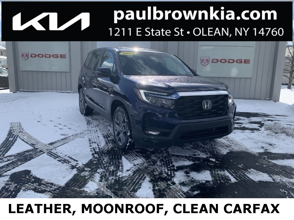 CARFAX One-Owner. Clean CARFAX. 2023 Honda Passport EX-L 4D Sport Utility Obsidian Blue Pearl Odometer is 1977 miles below market average! 3.5L V6 24V SOHC i-VTEC AWD 9-Speed Automatic Balance of new car warranty., Apple CarPlay/Android Auto, Blind Spot Information (BSI) System warning, Emergency communication system: HondaLink Assist, Exterior Parking Camera Rear, Front dual zone A/C, Fully automatic headlights, Garage door transmitter: HomeLink, Heated door mirrors, Heated front seats, Lane departure: Lane Keeping Assist System (LKAS) active, Leather-Trimmed Seats, Low tire pressure warning, Power door mirrors, Power driver seat, Power Liftgate, Power moonroof, Power passenger seat, Rear air conditioning, Remote keyless entry, Speed control, Wheels: 20" Pewter Gray Alloy. Final Price may require vehicle trade in and Paul Brown trade assistance, see website for details. For a hassle free purchase experience, reach out to the Sales team at Paul Brown Motors at (585-376-5057). Conveniently located on E State Street, Olean NY 14760. We are worth the trip! Travel from over 75 miles away and don't purchase we will supply you with $25 gas card! Paul Brown Chevy, A Dealer For the People! Our For The People Pricing means ZERO price increases at Paul Brown.