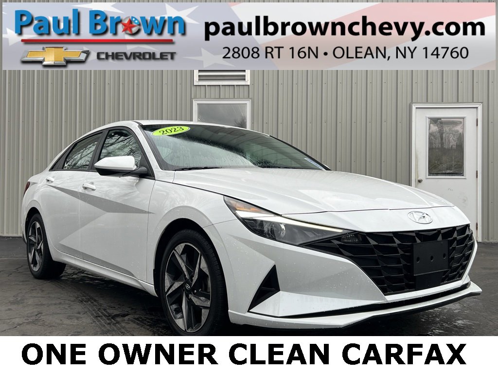 Priced below KBB Fair Purchase Price! CARFAX One-Owner. Clean CARFAX. 2023 Hyundai Elantra SEL 4D Sedan Quartz White I4 CVT FWD 30/40 City/Highway MPG Final Price may require vehicle trade in and Paul Brown trade assistance , see website for details. For a hassle free purchase experience, reach out to the Sales team at Paul Brown Chevy at (716) 244-6077. Conveniently located on Route 16 North, Olean NY 14760. We are worth the trip! Travel from over 75 miles away and don't purchase we will supply you with $25 gas card! Paul Brown Chevy, A Dealer For the People!