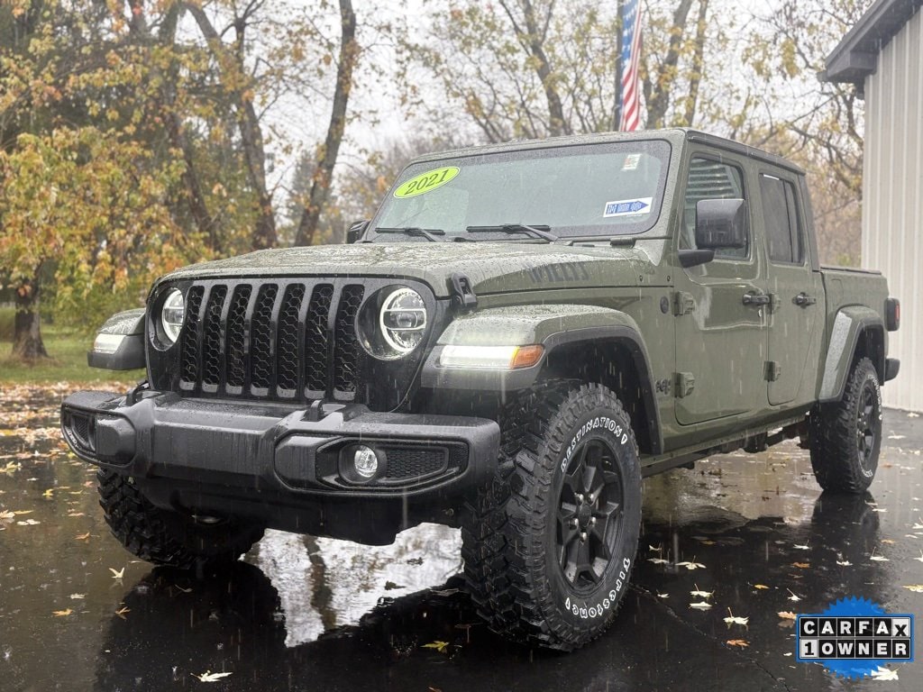 Priced below KBB Fair Purchase Price! CARFAX One-Owner. Clean CARFAX. 2021 Jeep Gladiator Willys 4D Crew Cab Sarge Green Clearcoat 3.6L V6 24V VVT 8-Speed Automatic 4WD 115V Auxiliary Power Outlet, 8.4 Touchscreen Display, Air Conditioning w/Auto Temperature Control, Automatic Headlamps, Cold Weather Group, Google Android Auto, Heated Front Seats, Heated Steering Wheel, Integrated roll-over protection, Integrated Voice Command w/Bluetooth, Low tire pressure warning, MOPAR Spray In Bedliner, ParkView Rear Back-Up Camera, Rear Window Defroster. Final Price may require vehicle trade in and Paul Brown trade assistance , see website for details. For a hassle free purchase experience, reach out to the Sales team at Paul Brown Chevy at (716) 244-6077. Conveniently located on Route 16 North, Olean NY 14760. We are worth the trip! Travel from over 75 miles away and don't purchase we will supply you with $25 gas card! Paul Brown Chevy, A Dealer For the People!