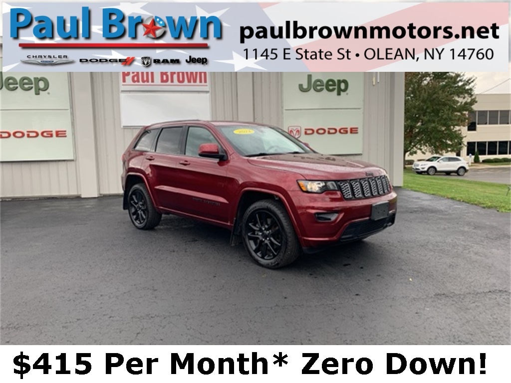 CARFAX One-Owner. Clean CARFAX. 2021 Jeep Grand Cherokee Laredo X 4D Sport Utility Velvet Red Pearlcoat Odometer is 29959 miles below market average! 3.6L V6 24V VVT 4WD 8-Speed Automatic *$415 per month /Zero cash or trade down / tax not included / 84 months and must qualify for top tier APR, 4G LTE Wi-Fi Hot Spot, Apple CarPlay/Android Auto, Black Suede Seats w/Black Stitching, Front dual zone A/C, Fully automatic headlights, Heated door mirrors, Low tire pressure warning, ParkView Rear Back-Up Camera, Power door mirrors, Power driver seat, Power Liftgate, Radio: Uconnect 4 w/7" Display, Rear window defroster, Wheels: 20" x 8.0" Gloss Black Aluminum. Final Price may require vehicle trade in and Paul Brown trade assistance, see website for details. For a hassle free purchase experience, reach out to the Sales team at Paul Brown Chevy at (716) 244-6077. Conveniently located on Route 16 North, Olean NY 14760. We are worth the trip! Travel from over 75 miles away and don't purchase we will supply you with $25 gas card! Paul Brown Chevy, A Dealer For the People! Our For The People Pricing means ZERO price increases at Paul Brown.