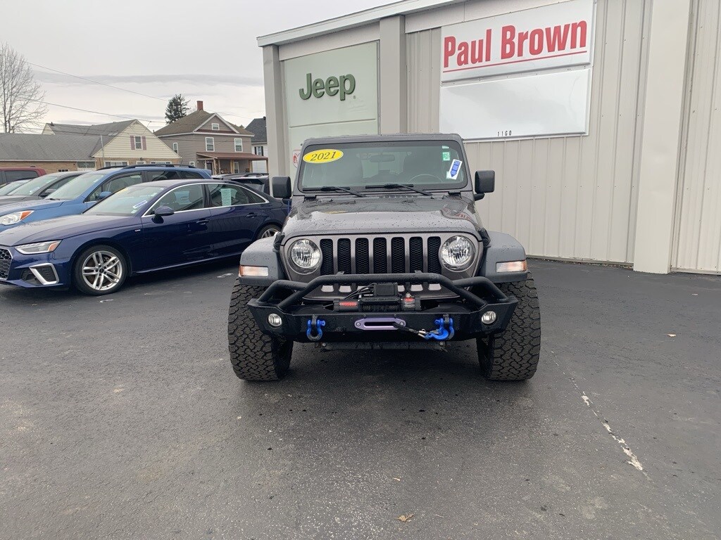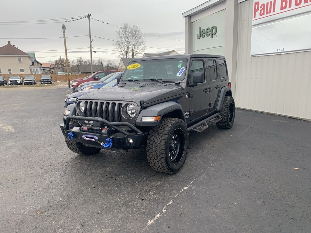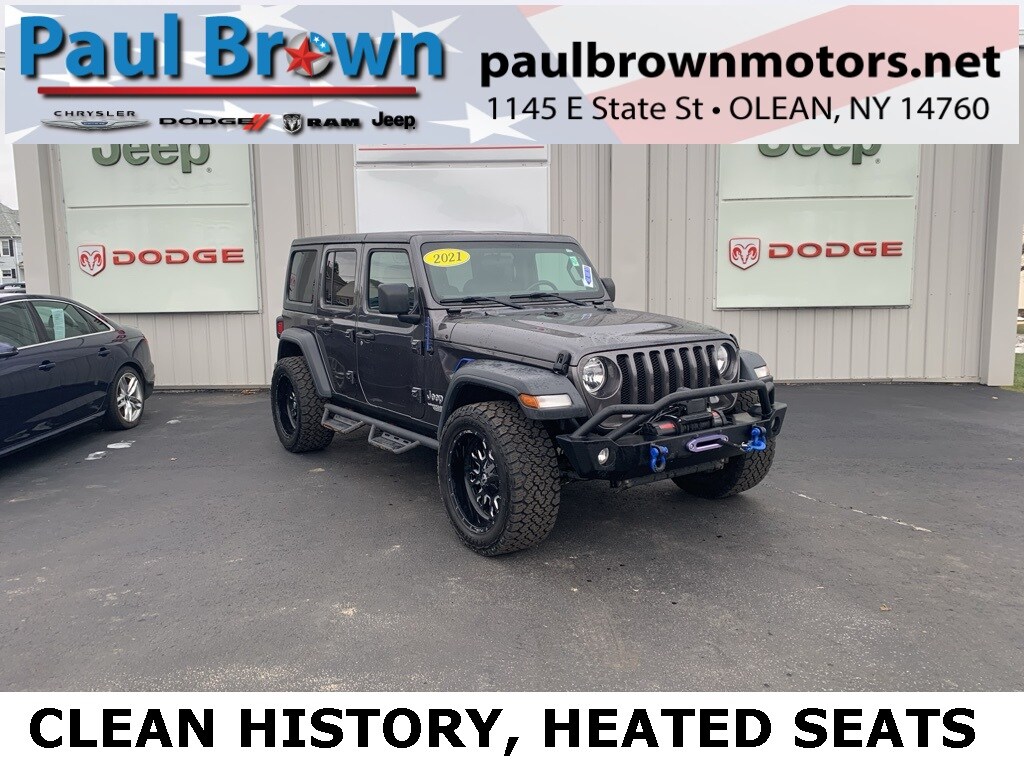 Priced below KBB Fair Purchase Price! Clean CARFAX. 2021 Jeep Wrangler Unlimited Sport S 4D Sport Utility Granite Crystal Metallic Clearcoat Odometer is 9223 miles below market average! 3.6L V6 24V VVT 4WD 8-Speed Automatic Air Conditioning w/Auto Temperature Control, Apple CarPlay, Black 3-Piece Hard Top, Cold Weather Group, Heated Front Seats, Heated Steering Wheel, Integrated roll-over protection, Low tire pressure warning, ParkView Rear Back-Up Camera, Power Heated Mirrors, Rear Window Defroster, Rear Window Wiper/Washer, SiriusXM Radio Service, SiriusXM Satellite Radio, Universal Garage Door Opener. Final Price may require vehicle trade in and Paul Brown trade assistance, see website for details. For a hassle free purchase experience, reach out to the Sales team at Paul Brown Chevy at (716) 244-6077. Conveniently located on Route 16 North, Olean NY 14760. We are worth the trip! Travel from over 75 miles away and don't purchase we will supply you with $25 gas card! Paul Brown Chevy, A Dealer For the People! Our For The People Pricing means ZERO price increases at Paul Brown.