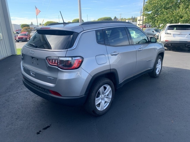 Priced below KBB Fair Purchase Price! CARFAX One-Owner. Clean CARFAX. 2022 Jeep Compass Latitude 4D Sport Utility Billet Silver Metallic Clearcoat Odometer is 3149 miles below market average! 2.4L I4 4WD 9-Speed 948TE Automatic 17" x 7" Painted Aluminum Wheels, Air Conditioning, Fully automatic headlights, Heated door mirrors, Low tire pressure warning, Power door mirrors, Remote keyless entry, Split folding rear seat. 22/30 City/Highway MPG Final Price may require vehicle trade in and Paul Brown trade assistance, see website for details. For a hassle free purchase experience, reach out to the Sales team at Paul Brown Chevy at (716) 244-6077. Conveniently located on Route 16 North, Olean NY 14760. We are worth the trip! Travel from over 75 miles away and don't purchase we will supply you with $25 gas card! Paul Brown Chevy, A Dealer For the People! Our For The People Pricing means ZERO price increases at Paul Brown.