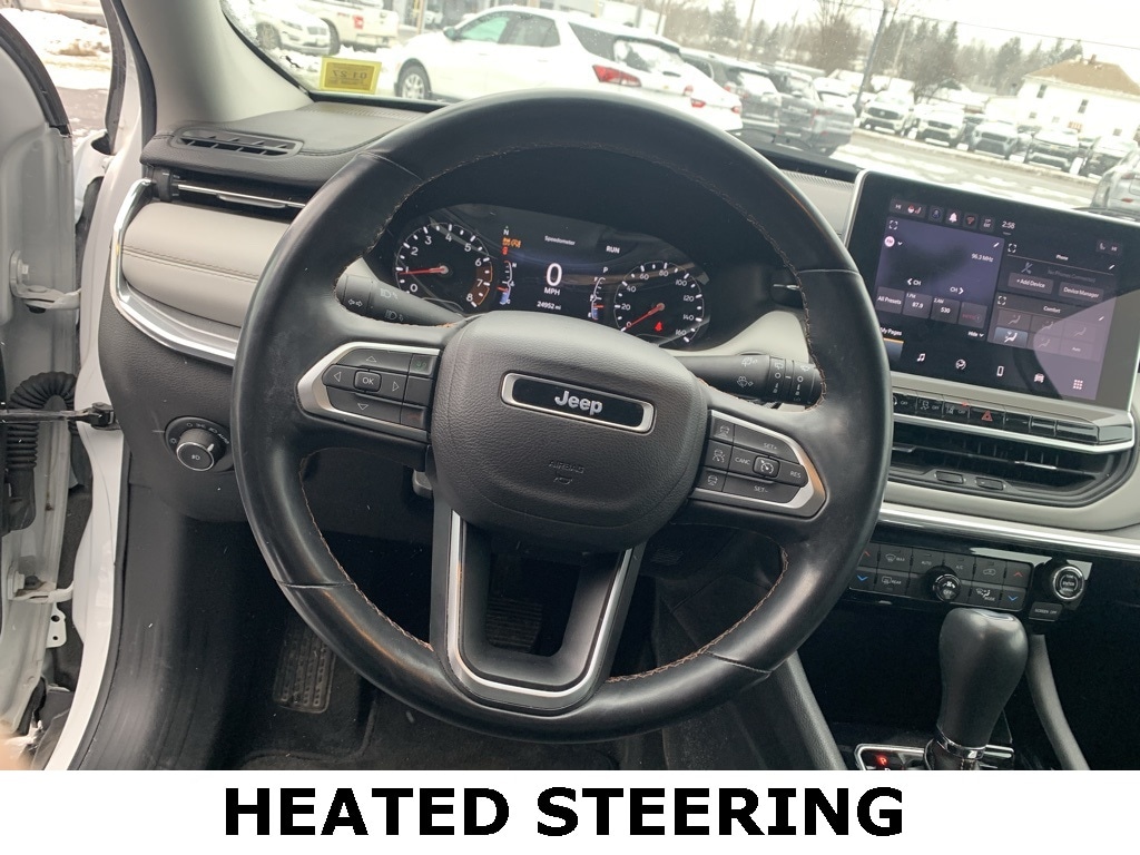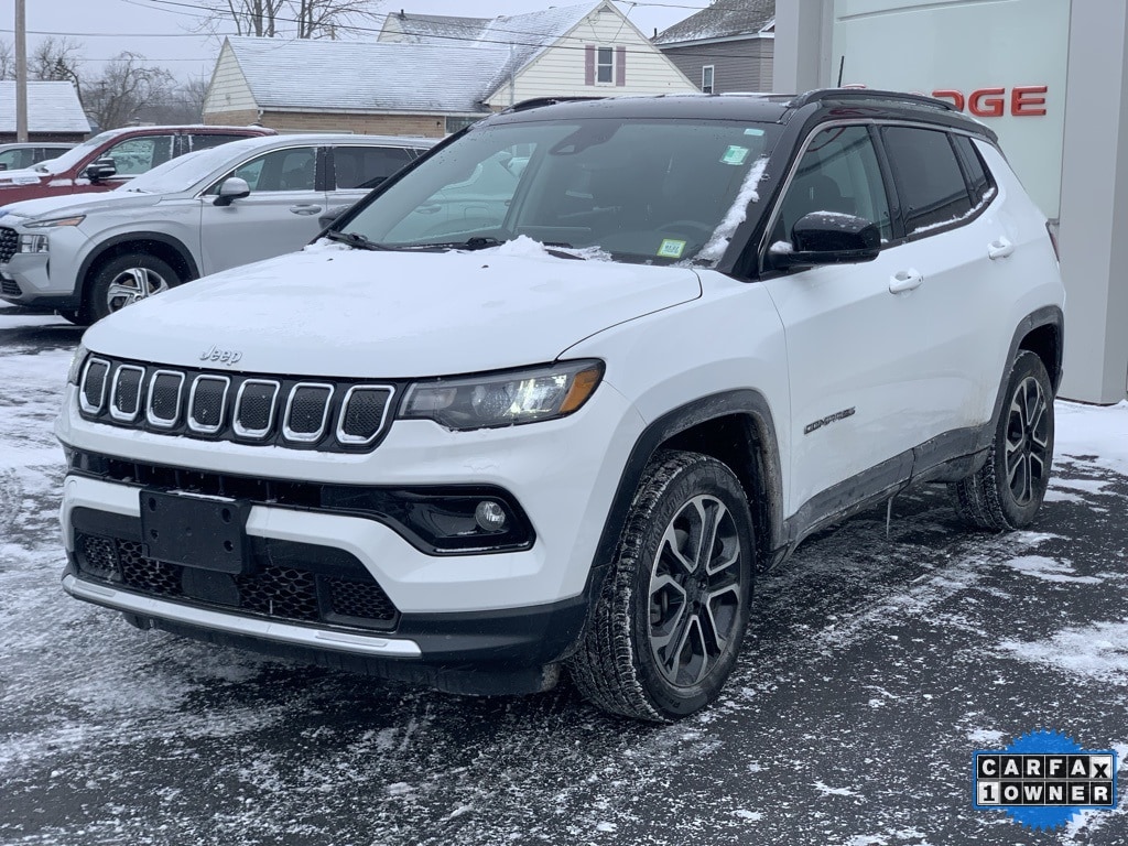 Priced below KBB Fair Purchase Price! CARFAX One-Owner. Clean CARFAX. 2022 Jeep Compass Limited 4D Sport Utility Bright White Clearcoat Odometer is 4485 miles below market average! 2.4L I4 4WD 9-Speed 948TE Automatic Balance of new car warranty., Local Trade, Sold and serviced right here at Paul Brown., Automatic temperature control, Emergency communication system: SiriusXM Guardian, Front dual zone A/C, Fully automatic headlights, Heated door mirrors, Heated front seats, Heated steering wheel, Leather Trimmed Bucket Seats, Low tire pressure warning, ParkView Rear Back-Up Camera, Power door mirrors, Power driver seat, Power windows, Rain sensing wipers, Remote keyless entry, Speed control, Wheels: 18" x 7" Painted Diamond Cut Aluminum. 22/30 City/Highway MPG Final Price may require vehicle trade in and Paul Brown trade assistance, see website for details. For a hassle free purchase experience, reach out to the Sales team at Paul Brown Motors at (585-376-5057). Conveniently located on E State Street, Olean NY 14760. We are worth the trip! Travel from over 75 miles away and don't purchase we will supply you with $25 gas card! Paul Brown Chevy, A Dealer For the People! Our For The People Pricing means ZERO price increases at Paul Brown.