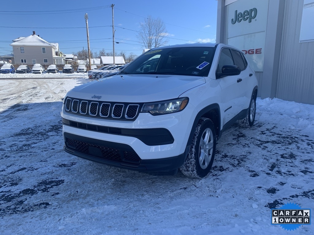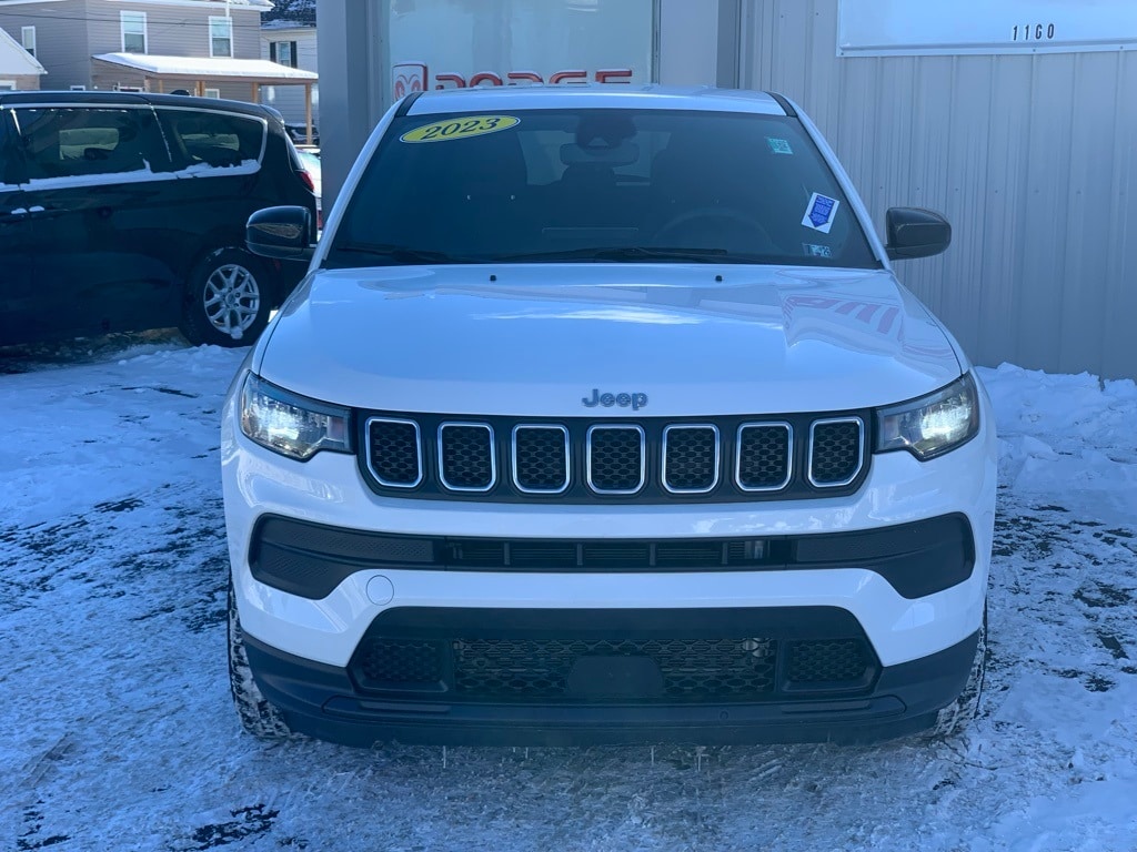 Priced below KBB Fair Purchase Price! CARFAX One-Owner. Clean CARFAX. 2023 Jeep Compass Sport 4D Sport Utility Bright White Clearcoat Odometer is 11041 miles below market average! 2.0L I4 DOHC 4WD 8-Speed Automatic Balance of new car warranty., Local Trade, 17" x 7.0" Aluminum Wheels, Air Conditioning, Cloth Low-Back Bucket Seats, Low tire pressure warning, ParkView Rear Back-Up Camera, Power windows, Rear window defroster, Remote keyless entry, Speed control. 24/32 City/Highway MPG Final Price may require vehicle trade in and Paul Brown trade assistance, see website for details. For a hassle free purchase experience, reach out to the Sales team at Paul Brown Chevy at (716) 244-6077. Conveniently located on Route 16 North, Olean NY 14760. We are worth the trip! Travel from over 75 miles away and don't purchase we will supply you with $25 gas card! Paul Brown Chevy, A Dealer For the People! Our For The People Pricing means ZERO price increases at Paul Brown.
