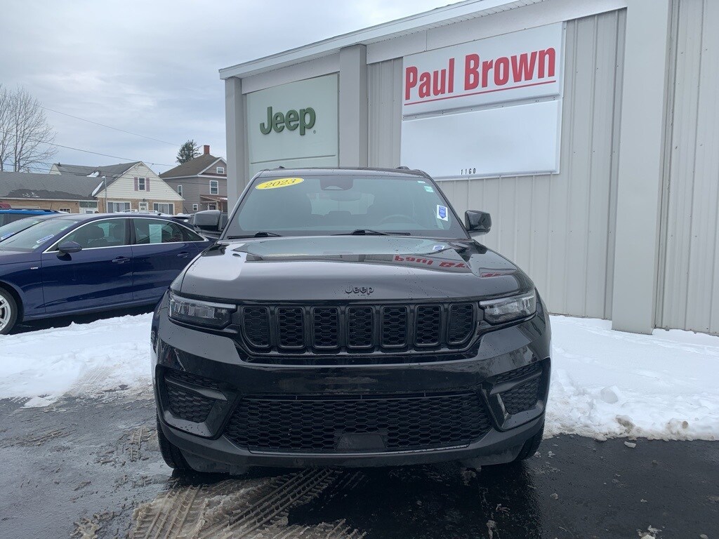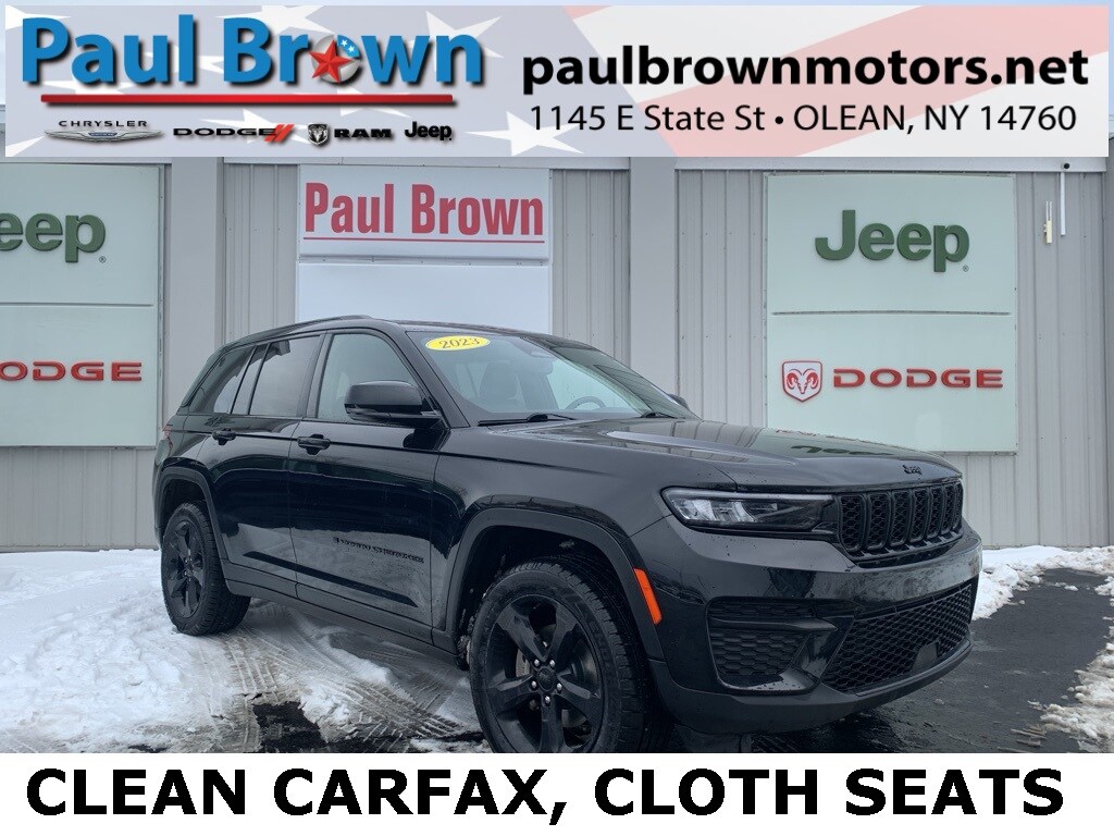 Priced below KBB Fair Purchase Price! CARFAX One-Owner. Clean CARFAX. 2023 Jeep Grand Cherokee Altitude 4D Sport Utility Diamond Black Crystal Pearlcoat 3.6L V6 24V VVT 4WD 8-Speed Automatic Cloth Seats, Front dual zone A/C, Fully automatic headlights, Heated door mirrors, Low tire pressure warning, ParkView Rear Back-Up Camera, Power door mirrors, Power driver seat, Power Liftgate, Power Sunroof, Rear window defroster, Wheels: 17" x 6.5" Fully Painted Aluminum. 19/26 City/Highway MPG Final Price may require vehicle trade in and Paul Brown trade assistance, see website for details. For a hassle free purchase experience, reach out to the Sales team at Paul Brown Chevy at (716) 244-6077. Conveniently located on Route 16 North, Olean NY 14760. We are worth the trip! Travel from over 75 miles away and don't purchase we will supply you with $25 gas card! Paul Brown Chevy, A Dealer For the People! Our For The People Pricing means ZERO price increases at Paul Brown.
