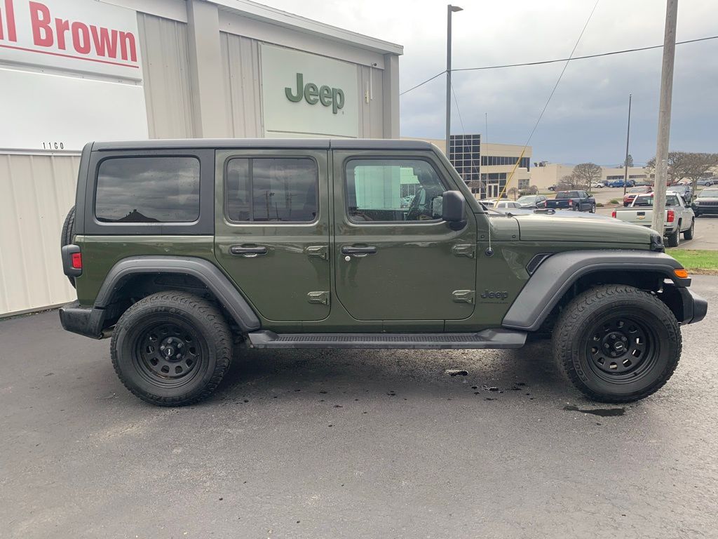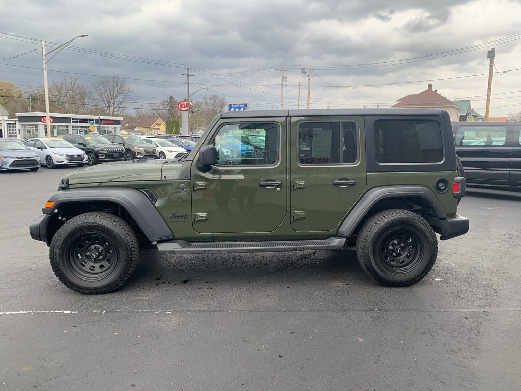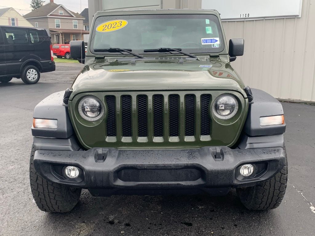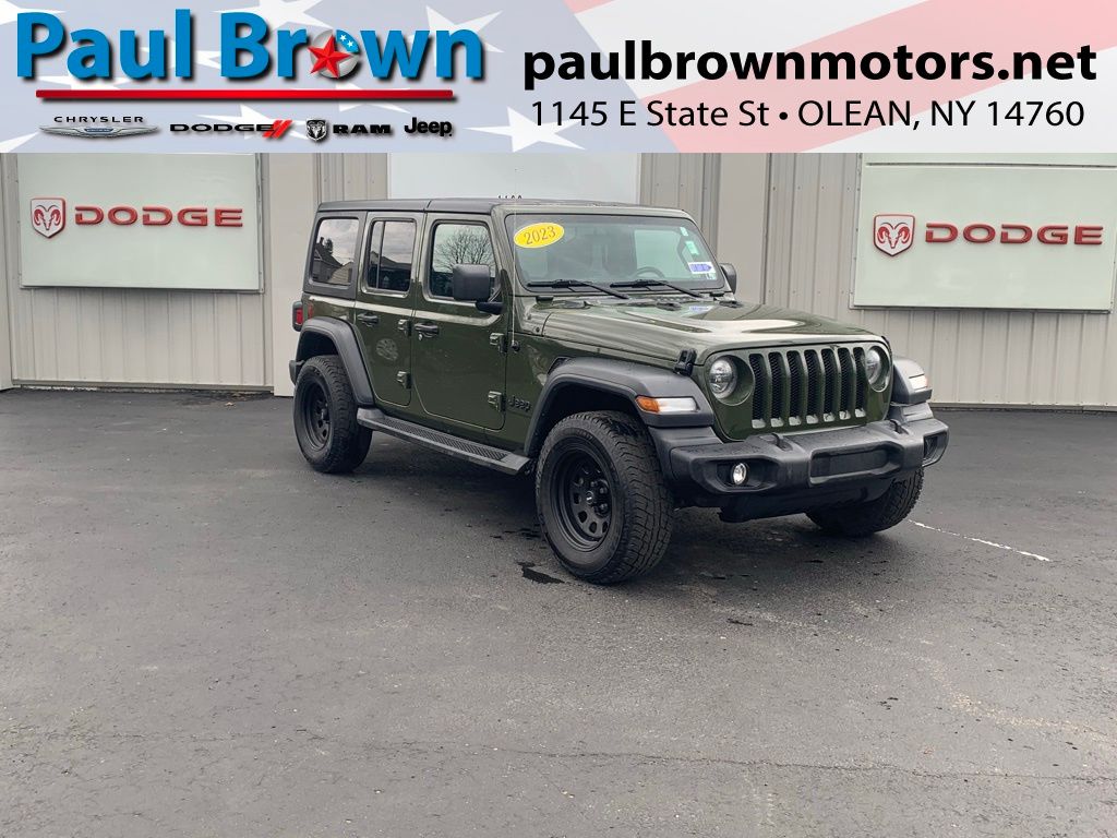 CARFAX One-Owner. Clean CARFAX. 2023 Jeep Wrangler Sport S 4D Sport Utility Sarge Green Clearcoat 2.0L I4 DOHC 4WD 8-Speed Automatic Local Trade, Air Conditioning, Apple CarPlay, Apple CarPlay/Android Auto, Automatic Headlamps, Black 3-Piece Hard Top, Cloth Low-Back Bucket Seats, Cold Weather Group, Convenience Group, Deep Tint Sunscreen Windows, Freedom Panel Storage Bag, Front 1-Touch Down Power Windows, Front fog lights, Google Android Auto, Heated Front Seats, Heated Steering Wheel, No Soft Top, ParkView Rear Back-Up Camera, Power Heated Mirrors, Premium Wrapped Steering Wheel, Quick Order Package 22S Sport S, Rear Window Defroster, Rear Window Wiper/Washer, Remote Keyless Entry, Security Alarm, Speed control, Speed Sensitive Power Locks, Sport S, Sun Visors w/Illuminated Vanity Mirrors, Telescoping steering wheel, Tilt steering wheel, Universal Garage Door Opener, Wheels: 17" x 7.5 Tech Silver Aluminum. Final Price may require vehicle trade in and Paul Brown trade assistance, see website for details. For a hassle free purchase experience, reach out to the Sales team at Paul Brown Motors at (585-376-5057). Conveniently located on E State Street, Olean NY 14760. We are worth the trip! Travel from over 75 miles away and don't purchase we will supply you with $25 gas card! Paul Brown Chevy, A Dealer For the People! Our For The People Pricing means ZERO price increases at Paul Brown.