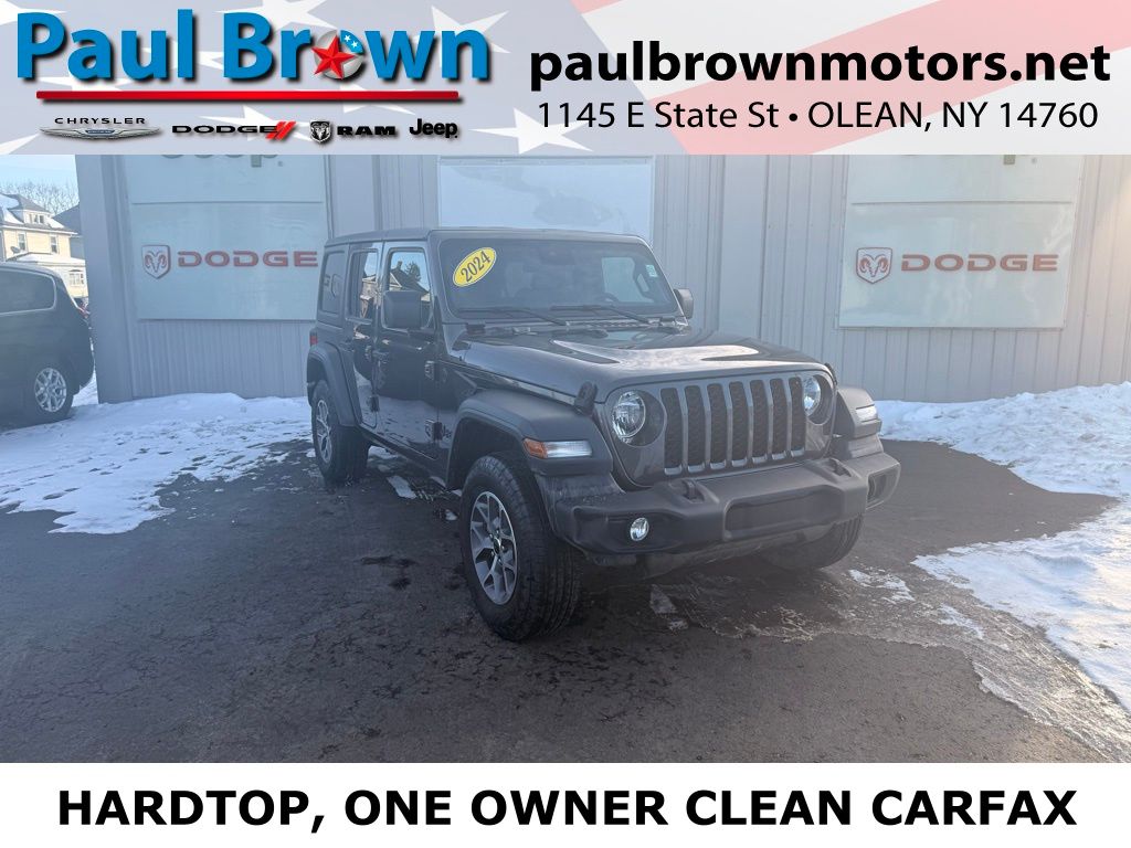 Priced below KBB Fair Purchase Price! CARFAX One-Owner. Clean CARFAX. 2024 Jeep Wrangler Sport S 4D Sport Utility Granite Crystal Metallic Clearcoat Odometer is 17912 miles below market average! 2.0L I4 DOHC 4WD 8-Speed Automatic Balance of new car warranty., Local Trade, Sold and serviced right here at Paul Brown., 2-Door Passive Entry, Front Door Locks, Advanced Brake Assist, Air Conditioning w/Auto Temperature Control, Air Filtering, Apple CarPlay/Android Auto, Automatic Headlamps, Black 3-Piece Hard Top, Cluster 7.0" TFT Color Display, Convenience Group, Corning Gorilla Glass, Deep Tint Sunscreen Windows, Emergency/Assistance Call, Enhanced Adaptive Cruise Control, Freedom Panel Storage Bag, Front 1-Touch Down Power Windows, Front fog lights, Full Speed Forward Collision Warning Plus, Heated Front Seats, Heated Steering Wheel, No Soft Top, ParkView Rear Back-Up Camera, Power Heated Mirrors, Premium Wrapped Steering Wheel, Quick Order Package 22S Sport S, Rear Window Defroster, Rear Window Wiper/Washer, Remote Keyless Entry, Remote Start System, Security Alarm, Speed Sensitive Power Locks, Sport S, Sun Visors w/Illuminated Vanity Mirrors, Universal Garage Door Opener, Wheels: 17" x 7.5" Gray. Final Price may require vehicle trade in and Paul Brown trade assistance, see website for details. For a hassle free purchase experience, reach out to the Sales team at Paul Brown Motors at (585-376-5057). Conveniently located on E State Street, Olean NY 14760. We are worth the trip! Travel from over 75 miles away and don't purchase we will supply you with $25 gas card! Paul Brown Chevy, A Dealer For the People! Our For The People Pricing means ZERO price increases at Paul Brown.