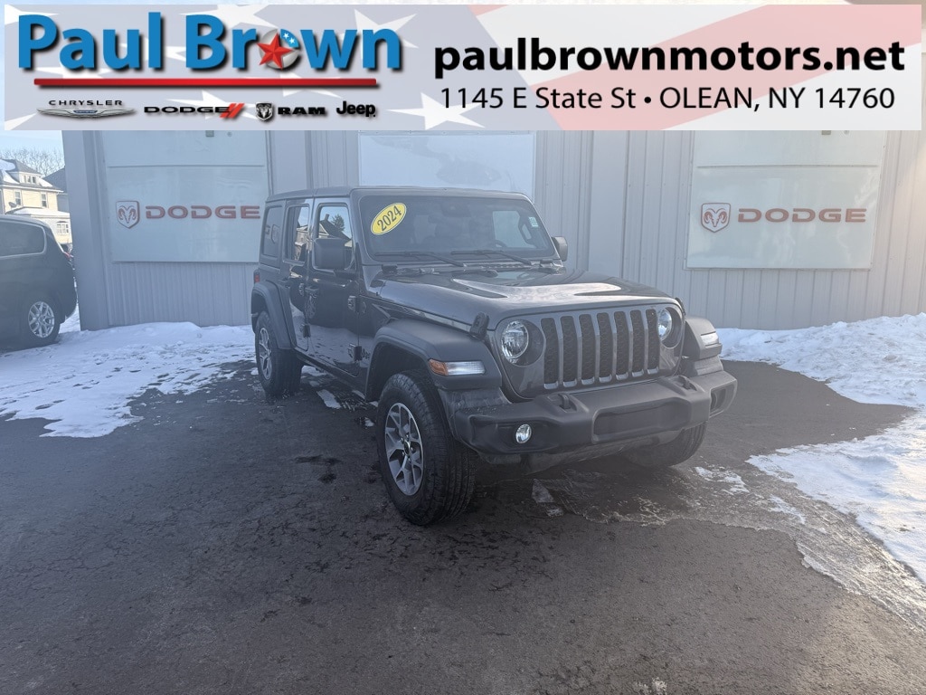 Priced below KBB Fair Purchase Price! CARFAX One-Owner. Clean CARFAX. 2024 Jeep Wrangler Sport S 4D Sport Utility Granite Crystal Metallic Clearcoat Odometer is 13218 miles below market average! 2.0L I4 DOHC 4WD 8-Speed Automatic Balance of new car warranty., Local Trade, Sold and serviced right here at Paul Brown., 2-Door Passive Entry, Front Door Locks, Advanced Brake Assist, Air Conditioning w/Auto Temperature Control, Air Filtering, Apple CarPlay/Android Auto, Automatic Headlamps, Black 3-Piece Hard Top, Cluster 7.0" TFT Color Display, Convenience Group, Corning Gorilla Glass, Deep Tint Sunscreen Windows, Emergency/Assistance Call, Enhanced Adaptive Cruise Control, Freedom Panel Storage Bag, Front 1-Touch Down Power Windows, Front fog lights, Full Speed Forward Collision Warning Plus, Heated Front Seats, Heated Steering Wheel, No Soft Top, ParkView Rear Back-Up Camera, Power Heated Mirrors, Premium Wrapped Steering Wheel, Quick Order Package 22S Sport S, Rear Window Defroster, Rear Window Wiper/Washer, Remote Keyless Entry, Remote Start System, Security Alarm, Speed Sensitive Power Locks, Sport S, Sun Visors w/Illuminated Vanity Mirrors, Universal Garage Door Opener, Wheels: 17" x 7.5" Gray. Final Price may require vehicle trade in and Paul Brown trade assistance, see website for details. For a hassle free purchase experience, reach out to the Sales team at Paul Brown Motors at (585-376-5057). Conveniently located on E State Street, Olean NY 14760. We are worth the trip! Travel from over 75 miles away and don't purchase we will supply you with $25 gas card! Paul Brown Chevy, A Dealer For the People! Our For The People Pricing means ZERO price increases at Paul Brown.