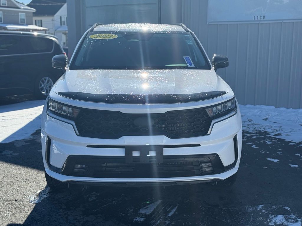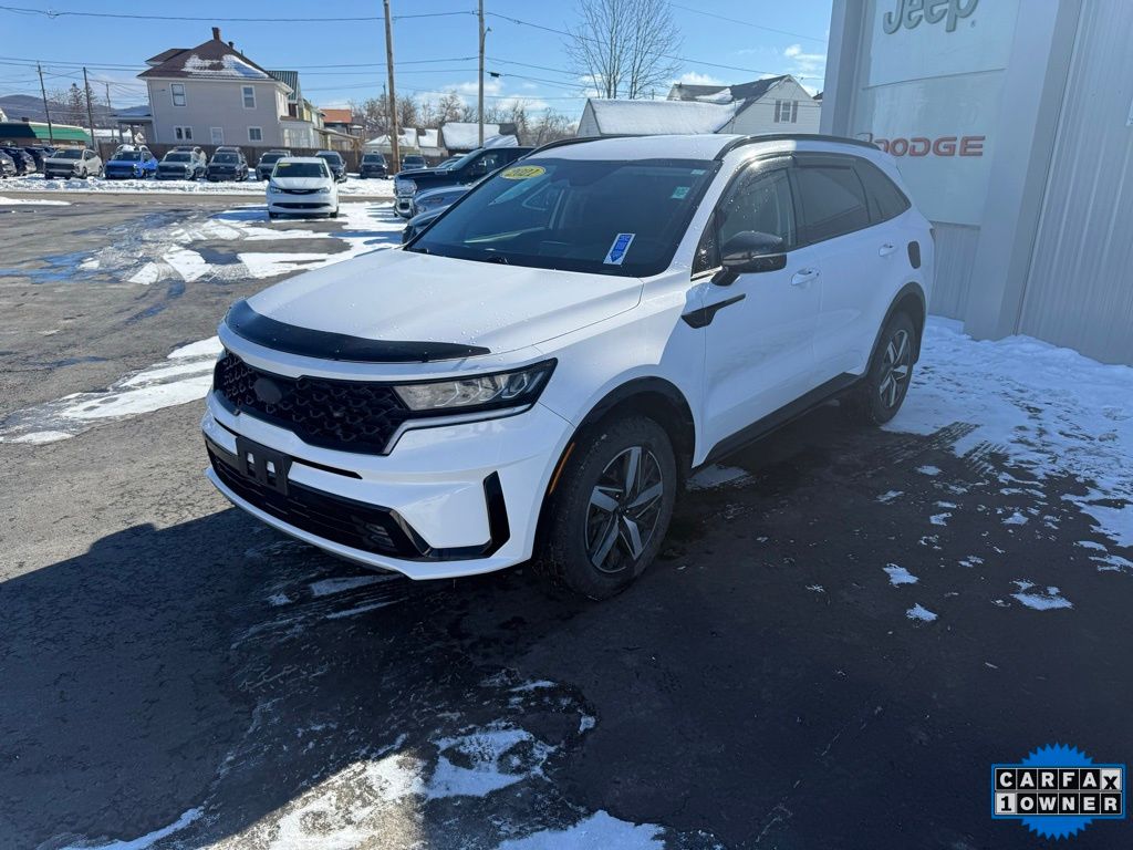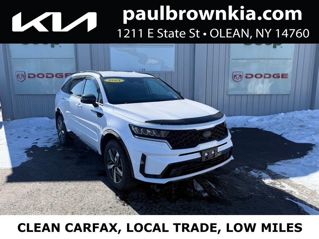 Priced below KBB Fair Purchase Price! CARFAX One-Owner. Clean CARFAX. 2021 Kia Sorento EX 4D Sport Utility Glacial White Pearl Odometer is 33308 miles below market average! 2.5L I4 DGI Turbocharged DOHC 16V LEV3-ULEV70 281hp AWD 8-Speed DCT Local Trade, 18" Machine-Finished Alloy Wheels, 3rd row seats: split-bench, Apple CarPlay & Android Auto, Exterior Parking Camera Rear, Front dual zone A/C, Front fog lights, Heated door mirrors, Heated front seats, Low tire pressure warning, Power door mirrors, Power driver seat, Power Liftgate, Power windows, Premium Leatherette Seat Trim, Rear air conditioning, Remote keyless entry, Speed control, Telescoping steering wheel, Tilt steering wheel. 21/28 City/Highway MPG Final Price may require vehicle trade in and Paul Brown trade assistance, see website for details. For a hassle free purchase experience, reach out to the Sales team at Paul Brown Motors at (585-376-5057). Conveniently located on E State Street, Olean NY 14760. We are worth the trip! Travel from over 75 miles away and don't purchase we will supply you with $25 gas card! Paul Brown Chevy, A Dealer For the People! Our For The People Pricing means ZERO price increases at Paul Brown.