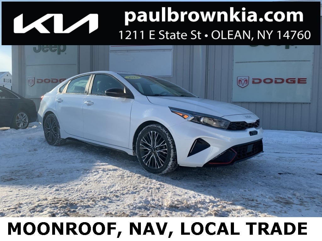 Priced below KBB Fair Purchase Price! CARFAX One-Owner. 2023 Kia Forte GT-Line 4D Sedan Snow White Pearl 2.0L I4 MPI FWD CVT 17" x 7.0J Alloy Wheels, Apple CarPlay & Android Auto, Emergency communication system, Forward Collision Avoidance-Assist - Cyclist, Front dual zone A/C, Fully automatic headlights, GT-Line Premium Package, Heated door mirrors, LED Interior Lighting, Low tire pressure warning, Navigation System/GPS/Navi, Navigation-Based Smart Cruise Control (NSCC), Power door mirrors, Power Sunroof, Radio: harman kardon Premium Audio, Rear window defroster, Smart Cruise Control w/Stop & Go, Wireless Charging. 28/39 City/Highway MPG Final Price may require vehicle trade in and Paul Brown trade assistance, see website for details. For a hassle free purchase experience, reach out to the Sales team at Paul Brown Chevy at (716) 244-6077. Conveniently located on Route 16 North, Olean NY 14760. We are worth the trip! Travel from over 75 miles away and don't purchase we will supply you with $25 gas card! Paul Brown Chevy, A Dealer For the People! Our For The People Pricing means ZERO price increases at Paul Brown.