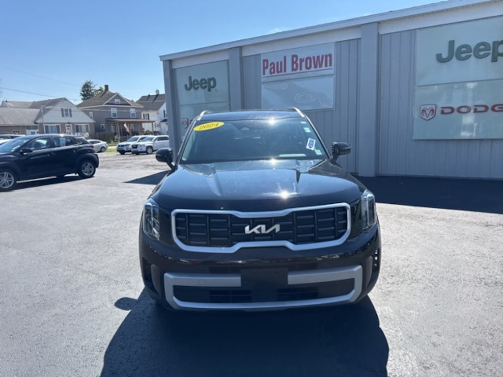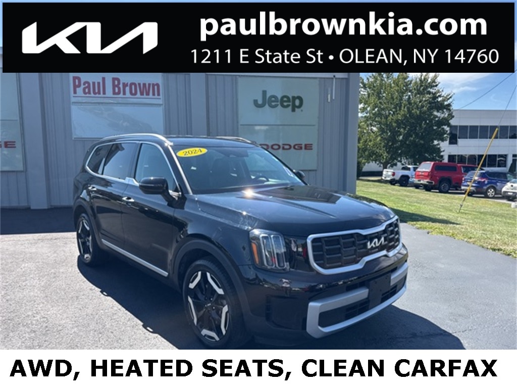 CARFAX One-Owner. Clean CARFAX. 2024 Kia Telluride S 4D Sport Utility Ebony Black Odometer is 2302 miles below market average! 3.8L V6 DOHC AWD 8-Speed Automatic Apple CarPlay & Android Auto, Emergency communication system: 911 Connect, Front dual zone A/C, Fully automatic headlights, Heated door mirrors, Heated front seats, Low tire pressure warning, Navigation System/GPS/Navi, Power door mirrors, Power driver seat, Rear air conditioning, Rear window defroster, SynTex Synthetic Leather Seat Trim, Wheels: 20" x 7.5" Black Finish. Final Price may require vehicle trade in and Paul Brown trade assistance , see website for details. For a hassle free purchase experience, reach out to the Sales team at Paul Brown Chevy at (716) 244-6077. Conveniently located on Route 16 North, Olean NY 14760. We are worth the trip! Travel from over 75 miles away and don't purchase we will supply you with $25 gas card! Paul Brown Chevy, A Dealer For the People! Our For The People Pricing means ZERO price increases at Paul Brown.