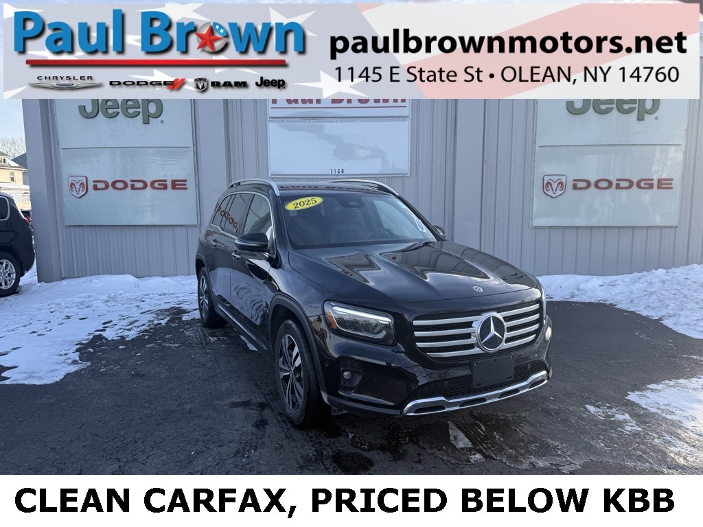 Priced below KBB Fair Purchase Price! CARFAX One-Owner. Clean CARFAX. 2025 Mercedes-Benz GLB 250 4MATIC® 4D Sport Utility Cosmos Black Metallic 2.0L I4 Turbocharged 4MATIC® 8 Speed Dual Clutch Apple CarPlay®/Android Auto®, Automatic temperature control, Emergency communication system: Mercedes-Benz Emergency Call Service, Exterior Parking Camera Rear, Front dual zone A/C, Front fog lights, Heated door mirrors, Heated front seats, Low tire pressure warning, MB-Tex Upholstery, Memory seat, Power door mirrors, Power driver seat, Power Liftgate, Power windows, Rain sensing wipers, Remote keyless entry, SiriusXM Satellite Radio, Speed control, Telescoping steering wheel, Tilt steering wheel, Traction control, Wheels: 18" Twin 5-Spoke. 24/33 City/Highway MPG Final Price may require vehicle trade in and Paul Brown trade assistance, see website for details. For a hassle free purchase experience, reach out to the Sales team at Paul Brown Motors at (585-376-5057). Conveniently located on E State Street, Olean NY 14760. We are worth the trip! Travel from over 75 miles away and don't purchase we will supply you with $25 gas card! Paul Brown Chevy, A Dealer For the People! Our For The People Pricing means ZERO price increases at Paul Brown.