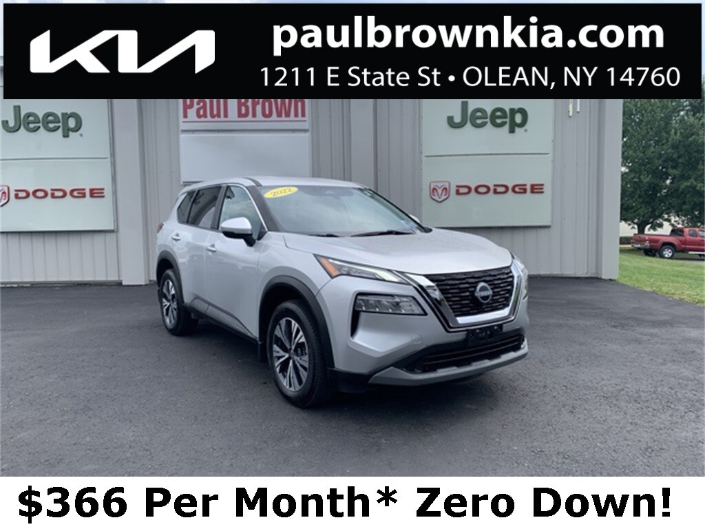 Priced below KBB Fair Purchase Price! CARFAX One-Owner. 2022 Nissan Rogue SV 4D Sport Utility Brilliant Silver Metallic Odometer is 10148 miles below market average! 1.5L I3 Turbocharged DOHC 12V LEV3-ULEV50 201hp AWD CVT with Xtronic Balance of new car warranty., $366 per month /Zero cash or trade down / tax not included / 84 months and must qualify for top tier APR, 18" Aluminum Alloy Wheels, Cloth Seat Trim, Emergency communication system: NissanConnect Services, Front dual zone A/C, Fully automatic headlights, Heated door mirrors, Low tire pressure warning, Power door mirrors, Power driver seat, Power windows, Rear Parking Sensors, Rear window defroster, Remote keyless entry, Speed control, Traction control. 28/35 City/Highway MPG Final Price may require vehicle trade in and Paul Brown trade assistance, see website for details. For a hassle free purchase experience, reach out to the Sales team at Paul Brown Chevy at (716) 244-6077. Conveniently located on Route 16 North, Olean NY 14760. We are worth the trip! Travel from over 75 miles away and don't purchase we will supply you with $25 gas card! Paul Brown Chevy, A Dealer For the People! Our For The People Pricing means ZERO price increases at Paul Brown.