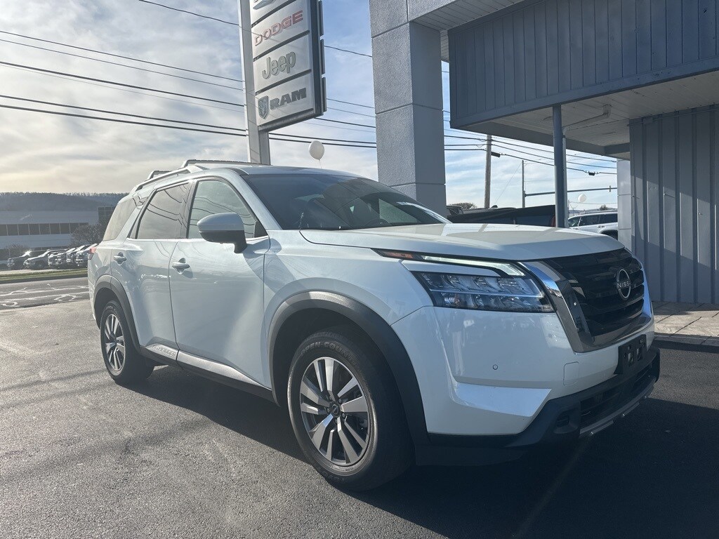 CARFAX One-Owner. Clean CARFAX. 2023 Nissan Pathfinder SL 4D Sport Utility Pearl White Tricoat V6 4WD 9-Speed Automatic Final Price may require vehicle trade in and Paul Brown trade assistance, see website for details. For a hassle free purchase experience, reach out to the Sales team at Paul Brown Chevy at (716) 244-6077. Conveniently located on Route 16 North, Olean NY 14760. We are worth the trip! Travel from over 75 miles away and don't purchase we will supply you with $25 gas card! Paul Brown Chevy, A Dealer For the People! Our For The People Pricing means ZERO price increases at Paul Brown.