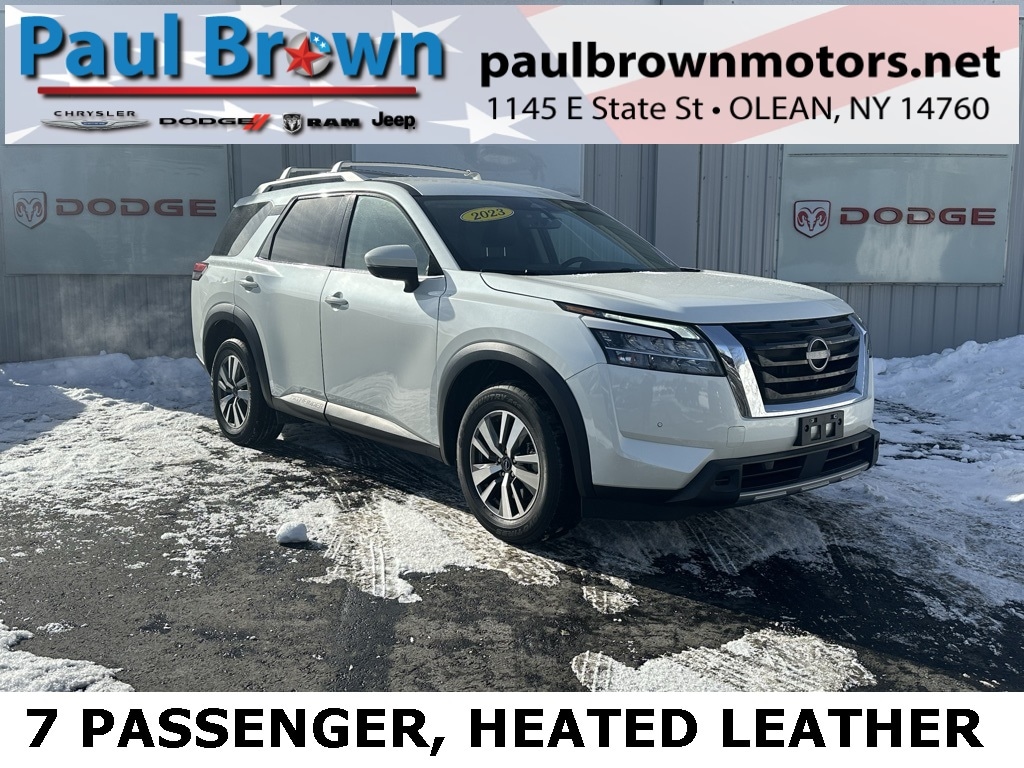 Priced below KBB Fair Purchase Price! CARFAX One-Owner. Clean CARFAX. 2023 Nissan Pathfinder SL 4D Sport Utility Pearl White Tricoat V6 4WD 9-Speed Automatic 18" Machined Alloy Wheels, Emergency communication system: NissanConnect Services, Exterior Parking Camera Rear, Front dual zone A/C, Fully automatic headlights, Garage door transmitter: HomeLink, Heated front seats, Heated steering wheel, Leather Seating Surfaces, Low tire pressure warning, Navigation system: NissanConnect Navigation, Power door mirrors, Power driver seat, Power Liftgate, Power passenger seat, Rear air conditioning, Rear window defroster. Final Price may require vehicle trade in and Paul Brown trade assistance, see website for details. For a hassle free purchase experience, reach out to the Sales team at Paul Brown Motors at (585-376-5057). Conveniently located on E State Street, Olean NY 14760. We are worth the trip! Travel from over 75 miles away and don't purchase we will supply you with $25 gas card! Paul Brown Chevy, A Dealer For the People! Our For The People Pricing means ZERO price increases at Paul Brown.