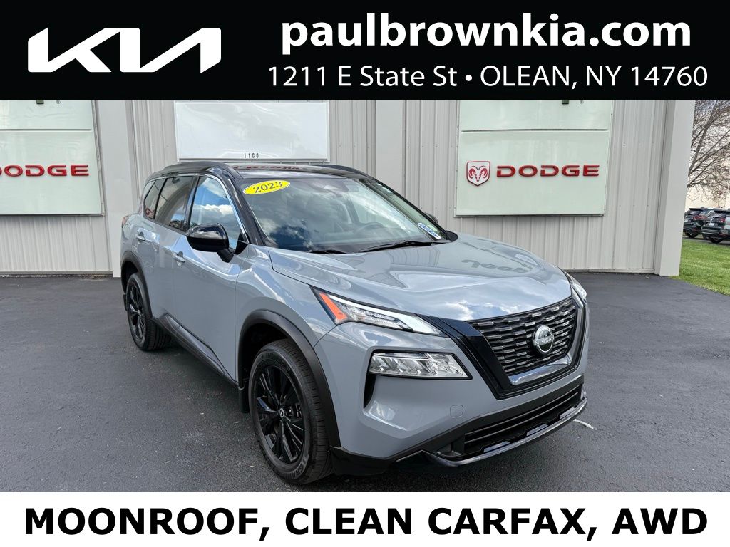 CARFAX One-Owner. Clean CARFAX. We want your trade, ask about Paul Brown Trade discount available to all customers with a trade in! 2023 Nissan Rogue SV Odometer is 2176 miles below market average! 4D Sport Utility Boulder Gray Pearl/Super Black 1.5L I3 Turbocharged DOHC 12V LEV3-ULEV50 201hp AWD CVT with Xtronic 28/35 City/Highway MPG Balance of new car warranty., Automatic temperature control, Black High Gloss Exterior Mirror Caps, Emergency communication system: NissanConnect Services, Front dual zone A/C, Fully automatic headlights, Heated door mirrors, Heated Driver & Front Passenger Seats, Heated Leather Wrapped Steering Wheel, Leatherette Door Trim Inserts w/Stitch, Low tire pressure warning, Midnight Edition Package, NissanConnect featuring Apple CarPlay and Android Auto, Panoramic Moonroof, Power door mirrors, Power driver seat, Power Liftgate, Power windows, PRIMATEX Leatherette Seat Trim, Rear Door Sunshades, Rear Parking Sensors, Rear Personal Lights, Remote keyless entry, Security Alarm, Silver Painted Roof Rails, Speed control, SV Premium B Package, TailorFit Leatherette Seat Trim, Telescoping steering wheel, Tilt steering wheel, Wheels: 18" Gloss Black Painted Alloy. For a hassle free purchase experience, reach out to the Sales team at Paul Brown Motors at (585) 376-5057. Conveniently located on Route 16 North, Olean NY 14760. We are worth the trip! Travel from over 75 miles away and don't purchase we will supply you with $25 gas card! Paul Brown Motors, A Dealer For the People!