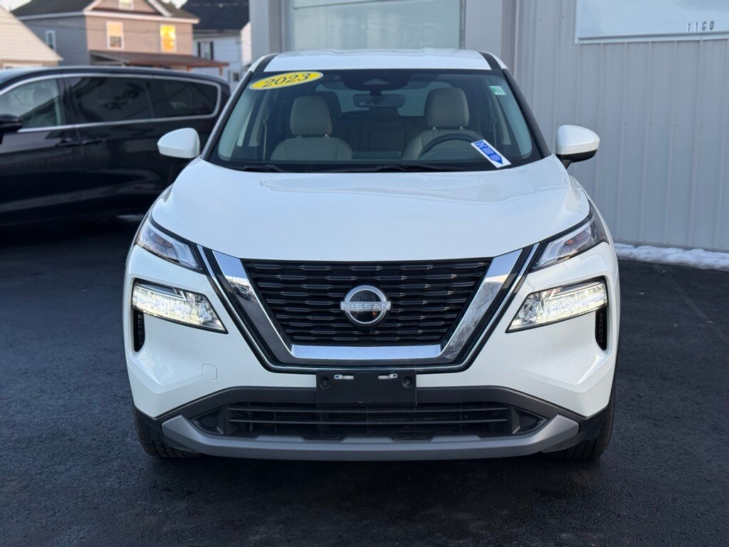 CARFAX One-Owner. Clean CARFAX. 2023 Nissan Rogue SV 4D Sport Utility Pearl White Tricoat Odometer is 9577 miles below market average! 1.5L I3 Turbocharged DOHC 12V LEV3-ULEV50 201hp AWD CVT with Xtronic Balance of new car warranty., 18" Aluminum Alloy Wheels, Automatic temperature control, Cloth Seat Trim, Emergency communication system: NissanConnect Services, Front dual zone A/C, Fully automatic headlights, Heated door mirrors, Low tire pressure warning, NissanConnect featuring Apple CarPlay and Android Auto, Power door mirrors, Power driver seat, Power windows, Rear Parking Sensors, Remote keyless entry, Speed control. 28/35 City/Highway MPG Final Price may require vehicle trade in and Paul Brown trade assistance, see website for details. For a hassle free purchase experience, reach out to the Sales team at Paul Brown Motors at (585-376-5057). Conveniently located on E State Street, Olean NY 14760. We are worth the trip! Travel from over 75 miles away and don't purchase we will supply you with $25 gas card! Paul Brown Chevy, A Dealer For the People! Our For The People Pricing means ZERO price increases at Paul Brown.