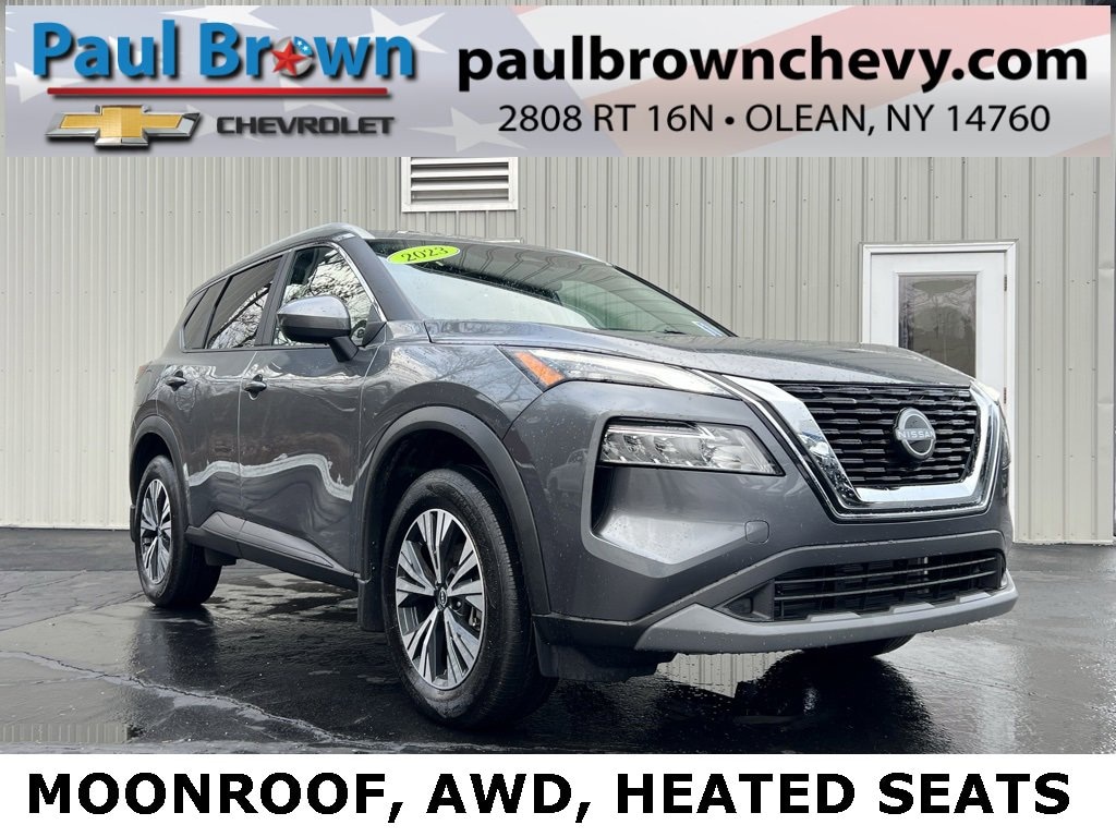 Priced below KBB Fair Purchase Price! CARFAX One-Owner. 2023 Nissan Rogue SV 4D Sport Utility Gun Metallic 1.5L I3 Turbocharged DOHC 12V LEV3-ULEV50 201hp CVT with Xtronic AWD Odometer is 13326 miles below market average! 18 Aluminum Alloy Wheels, Cloth Seat Trim, Front dual zone A/C, Fully automatic headlights, Heated door mirrors, Heated Driver & Front Passenger Seats, Heated Leather Wrapped Steering Wheel, Leatherette Door Trim Inserts w/Stitch, Low tire pressure warning, Panoramic Moonroof, Power door mirrors, Power driver seat, Power Liftgate, PRIMATEX Leatherette Seat Trim, Rear Door Sunshades, Rear Parking Sensors, Rear Personal Lights, Rear window defroster, Remote keyless entry, Security Alarm, Silver Painted Roof Rails, SV Premium B Package. 28/35 City/Highway MPG Final Price may require vehicle trade in and Paul Brown trade assistance , see website for details. For a hassle free purchase experience, reach out to the Sales team at Paul Brown Chevy at (716) 244-6077. Conveniently located on Route 16 North, Olean NY 14760. We are worth the trip! Travel from over 75 miles away and don't purchase we will supply you with $25 gas card! Paul Brown Chevy, A Dealer For the People!