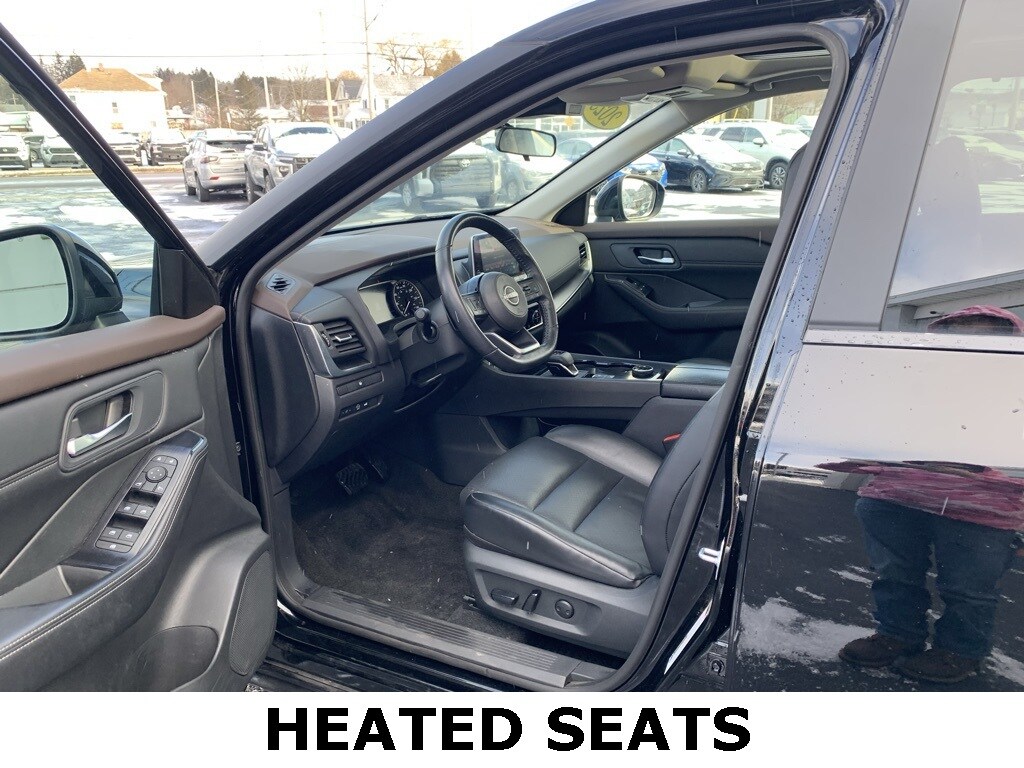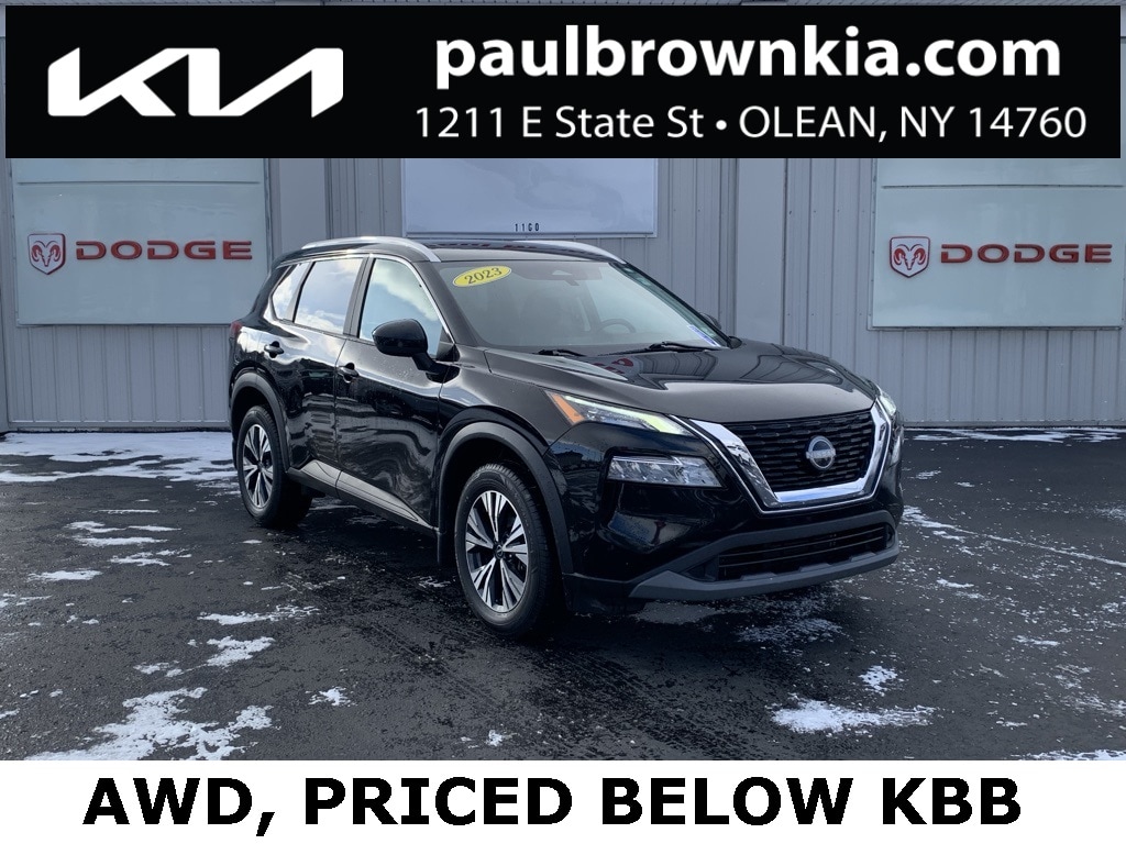 Priced below KBB Fair Purchase Price! CARFAX One-Owner. 2023 Nissan Rogue SV 4D Sport Utility Super Black 1.5L I3 Turbocharged DOHC 12V LEV3-ULEV50 201hp AWD CVT with Xtronic Balance of new car warranty., 18" Aluminum Alloy Wheels, Emergency communication system: NissanConnect Services, Front dual zone A/C, Fully automatic headlights, Heated door mirrors, Heated Driver & Front Passenger Seats, Heated Leather Wrapped Steering Wheel, Low tire pressure warning, Panoramic Moonroof, Power door mirrors, Power driver seat, Power Liftgate, Power windows, PRIMATEX Leatherette Seat Trim (DISC), Rear Door Sunshades, Rear Parking Sensors, Remote keyless entry, Silver Painted Roof Rails, Speed control, SV Premium Package (DISC). 28/35 City/Highway MPG Final Price may require vehicle trade in and Paul Brown trade assistance, see website for details. For a hassle free purchase experience, reach out to the Sales team at Paul Brown Motors at (585-376-5057). Conveniently located on E State Street, Olean NY 14760. We are worth the trip! Travel from over 75 miles away and don't purchase we will supply you with $25 gas card! Paul Brown Chevy, A Dealer For the People! Our For The People Pricing means ZERO price increases at Paul Brown.