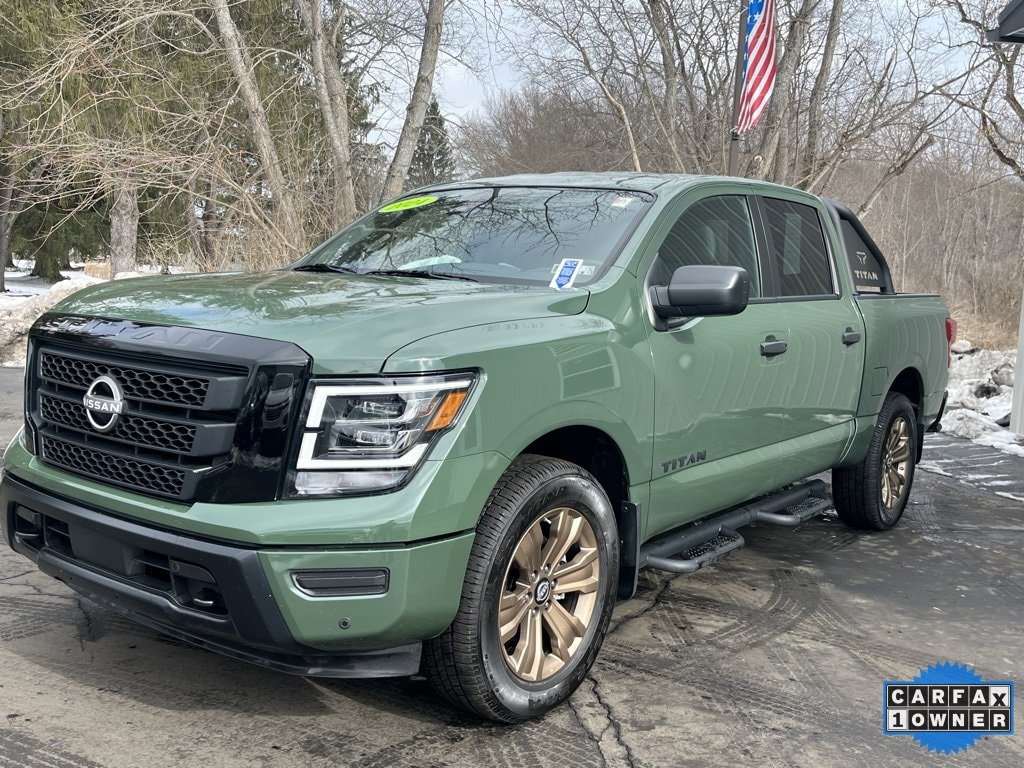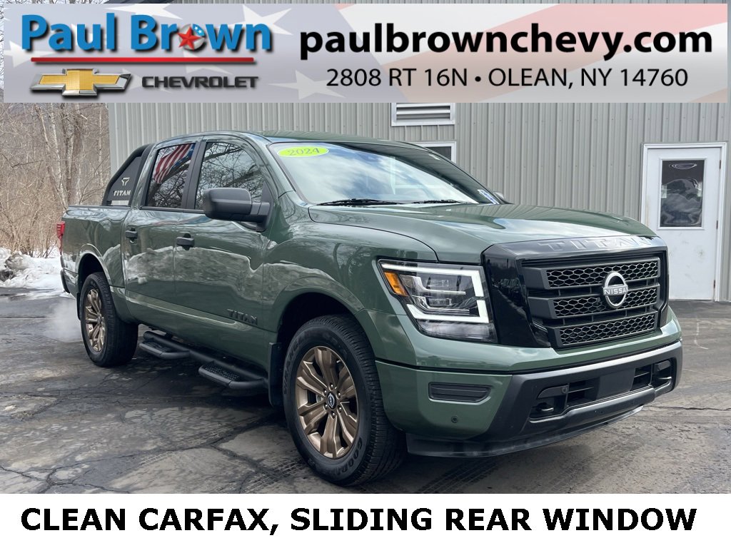 CARFAX One-Owner. Clean CARFAX. 2024 Nissan Titan SV 4D Crew Cab Tactical Green Metallic 5.6L V8 DOHC 32V LEV3-ULEV70 400hp 9-Speed Automatic 4WD 120V/12V Outlets In Back Of Center Console, 2 Illuminated USB-A Ports In Back Of Center Console, Accessory Bronze Edition Floor Mats, Accessory Sport Bar, Accessory Utility Package, Auto-Dimming Rear-View Mirror, Black Center Console Cupholder Rings, Black Center I/P, Switch & Vent Finishers, Black Driver & Front Passenger I/P Finishers, Black Front Bumper, Black Headliner & A-Pillar, Black Utility Mirror, Blind Spot Warning, Bronze Center Console Finishers, Bronze Door Finishers, Bronze Steering Wheel Finishers, Bronze TITAN Emblem On Front Doors, Bumper Step, Dedicated Cell Phone Holder, Drop In Bed Liner, Dual Illuminated Vanity Mirror Front Sun Visors, Dual Zone Automatic HVAC, Front & Rear Parking Sensors, Front Door TITAN Emblem Delete, Full LED Headlamp, Gloss Black Front Grille Surround, Heated Front Captain's Chairs, Intelligent Key System, Leather-Wrapped Steering Wheel, Low tire pressure warning, Mood Light, NissanConnect Services, Overhead Console w/Sunglass Holder, Power Sliding Rear Window w/Defogger, Rear HVAC Vents, Rear window defroster, Remote Engine Start System, Special Liftgate Emblem Treatments, SV Bronze Edition Package, SV Convenience Package, Trailer Hitch, Wheels: 20 x 8.0JJ Bronze, Wi-Fi Hotspot. Final Price may require vehicle trade in and Paul Brown trade assistance , see website for details. For a hassle free purchase experience, reach out to the Sales team at Paul Brown Chevy at (716) 244-6077. Conveniently located on Route 16 North, Olean NY 14760. We are worth the trip! Travel from over 75 miles away and don't purchase we will supply you with $25 gas card! Paul Brown Chevy, A Dealer For the People!