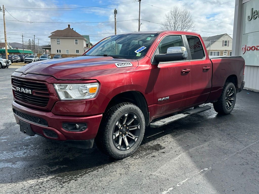 Clean CARFAX. 2019 Ram 1500 Big Horn/Lone Star 4D Quad Cab Delmonico Red Pearlcoat Odometer is 2061 miles below market average! HEMI 5.7L V8 Multi Displacement VVT 4WD 8-Speed Automatic Final Price may require vehicle trade in and Paul Brown trade assistance, see website for details. For a hassle free purchase experience, reach out to the Sales team at Paul Brown Motors at (585-376-5057). Conveniently located on E State Street, Olean NY 14760. We are worth the trip! Travel from over 75 miles away and don't purchase we will supply you with $25 gas card! Paul Brown Chevy, A Dealer For the People! Our For The People Pricing means ZERO price increases at Paul Brown. Awards: