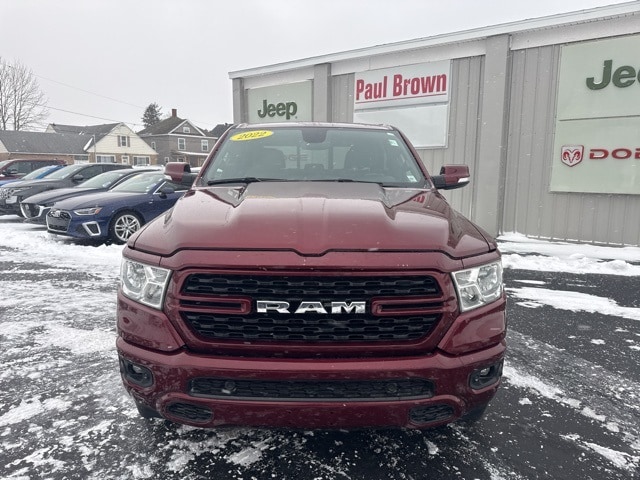 CARFAX One-Owner. Clean CARFAX. 2022 Ram 1500 Big Horn/Lone Star 4D Crew Cab Delmonico Red Pearlcoat HEMI 5.7L V8 Multi Displacement VVT 4WD 8-Speed Automatic 115V Auxiliary Power Outlet, 115V Auxiliary Rear Power Outlet, 2nd Row In Floor Storage Bins, 400W Inverter, 4G LTE Wi-Fi Hot Spot, Apple CarPlay, Bluetooth Handsfree Phone & Audio, Class IV Receiver Hitch, Emergency communication system: SiriusXM Guardian, Fully automatic headlights, Google Android Auto, Heated door mirrors, Heated Front Seats, Heated Steering Wheel, Low tire pressure warning, MOPAR Spray In Bedliner, ParkView Rear Back-Up Camera, Power 8-Way Driver Seat, Power Adjustable Pedals, Power door mirrors, Rear Power Sliding Window, Remote keyless entry, SiriusXM Satellite Radio, Trailer Brake Control, Wheels: 20" x 9" Aluminum Chrome Clad (WRK). Final Price may require vehicle trade in and Paul Brown trade assistance, see website for details. For a hassle free purchase experience, reach out to the Sales team at Paul Brown Chevy at (716) 244-6077. Conveniently located on Route 16 North, Olean NY 14760. We are worth the trip! Travel from over 75 miles away and don't purchase we will supply you with $25 gas card! Paul Brown Chevy, A Dealer For the People! Our For The People Pricing means ZERO price increases at Paul Brown.