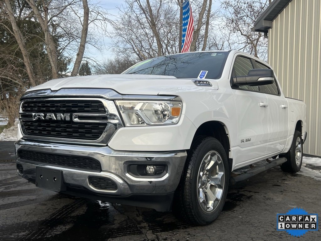 Priced below KBB Fair Purchase Price! CARFAX One-Owner. Clean CARFAX. 2022 Ram 1500 Big Horn/Lone Star 4D Crew Cab Bright White Clearcoat 3.6L V6 24V VVT 8-Speed Automatic 4WD 2nd Row In Floor Storage Bins, 4G LTE Wi-Fi Hot Spot, Air Conditioning, Apple CarPlay, Bluetooth Handsfree Phone & Audio, Class IV Receiver Hitch, Cloth Bench Seat, Emergency communication system: SiriusXM Guardian, Fully automatic headlights, Google Android Auto, Heated door mirrors, Low tire pressure warning, ParkView Rear Back-Up Camera, Power 2-Way Driver Lumbar Adjust, Power door mirrors, Rear Window Defroster, SiriusXM Satellite Radio, Universal Garage Door Opener. Final Price may require vehicle trade in and Paul Brown trade assistance , see website for details. For a hassle free purchase experience, reach out to the Sales team at Paul Brown Chevy at (716) 244-6077. Conveniently located on Route 16 North, Olean NY 14760. We are worth the trip! Travel from over 75 miles away and don't purchase we will supply you with $25 gas card! Paul Brown Chevy, A Dealer For the People!