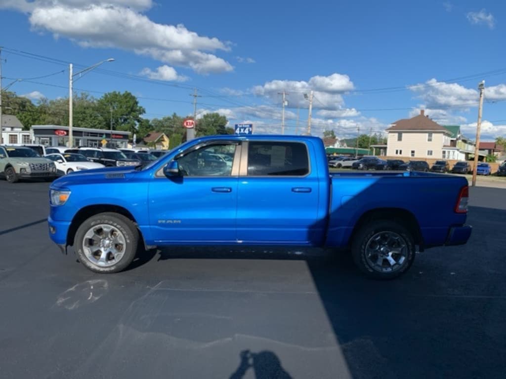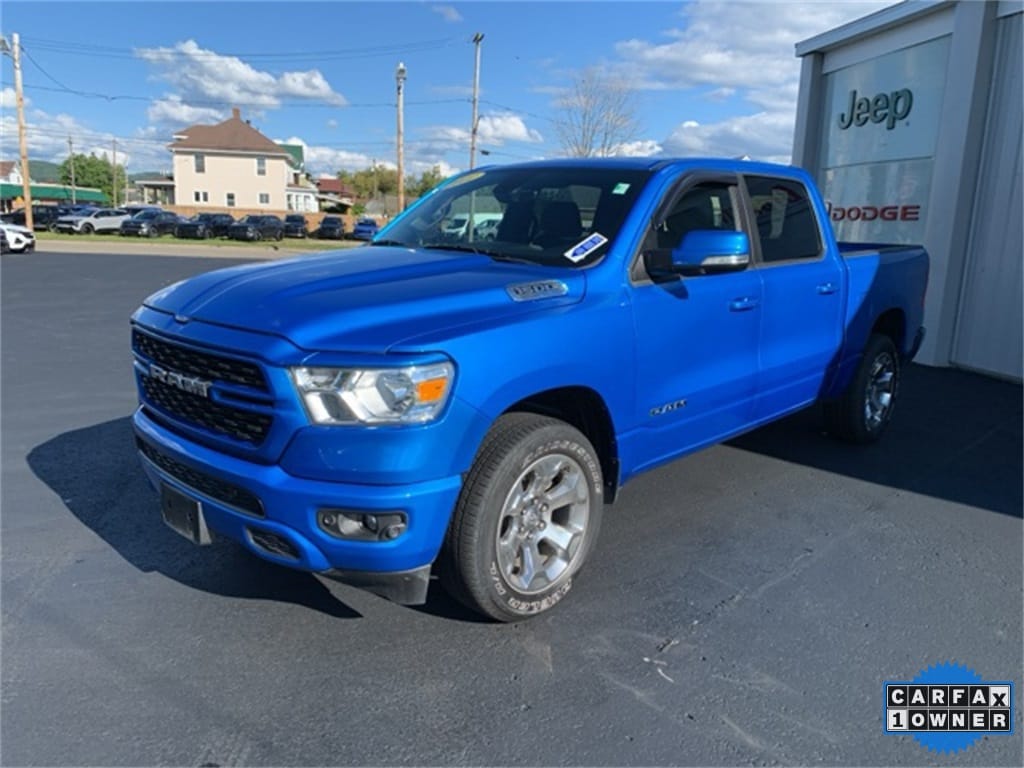 Priced below KBB Fair Purchase Price! Clean CARFAX. 2022 Ram 1500 Big Horn/Lone Star 4D Crew Cab Hydro Blue Pearlcoat Odometer is 7298 miles below market average! HEMI 5.7L V8 Multi Displacement VVT 4WD 8-Speed Automatic 115V Auxiliary Power Outlet, 115V Auxiliary Rear Power Outlet, 400W Inverter, 4G LTE Wi-Fi Hot Spot, 8.4" Touchscreen Display, Air Conditioning ATC w/Dual Zone Control, Anti-Spin Differential Rear Axle, Apple CarPlay, Bluetooth Handsfree Phone & Audio, Class IV Receiver Hitch, Emergency communication system: SiriusXM Guardian, Fully automatic headlights, Google Android Auto, Heated door mirrors, Heated Front Seats, Heated Steering Wheel, Integrated Voice Command w/Bluetooth, Low tire pressure warning, Power 8-Way Driver Seat, Power Adjustable Pedals, Power door mirrors, Rear Power Sliding Window, Rear Window Defroster, SiriusXM Satellite Radio, Trailer Brake Control. Final Price may require vehicle trade in and Paul Brown trade assistance , see website for details. For a hassle free purchase experience, reach out to the Sales team at Paul Brown Chevy at (716) 244-6077. Conveniently located on Route 16 North, Olean NY 14760. We are worth the trip! Travel from over 75 miles away and don't purchase we will supply you with $25 gas card! Paul Brown Chevy, A Dealer For the People! Our For The People Pricing means ZERO price increases at Paul Brown.
