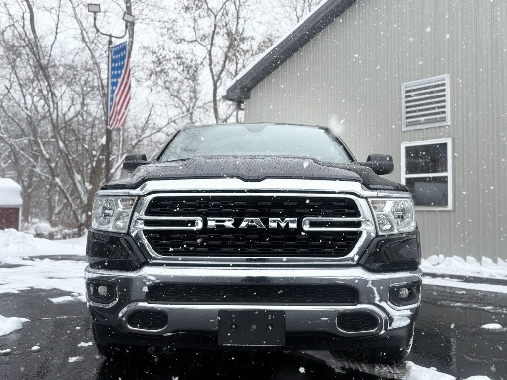CARFAX One-Owner. Clean CARFAX. 2022 Ram 1500 Big Horn/Lone Star 4D Quad Cab Diamond Black Crystal Pearlcoat 3.6L V6 24V VVT 8-Speed Automatic 4WD Odometer is 20650 miles below market average! Cloth Bench Seat, Emergency communication system: SiriusXM Guardian, Fully automatic headlights, Heated door mirrors, Integrated Voice Command w/Bluetooth, Low tire pressure warning, Power door mirrors, Wheels: 18 x 8 Cast-Aluminum Painted. Final Price may require vehicle trade in and Paul Brown trade assistance , see website for details. For a hassle free purchase experience, reach out to the Sales team at Paul Brown Chevy at (716) 244-6077. Conveniently located on Route 16 North, Olean NY 14760. We are worth the trip! Travel from over 75 miles away and don't purchase we will supply you with $25 gas card! Paul Brown Chevy, A Dealer For the People!