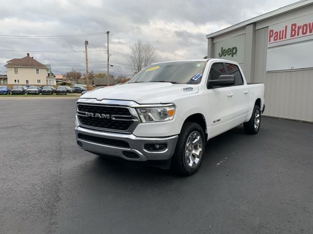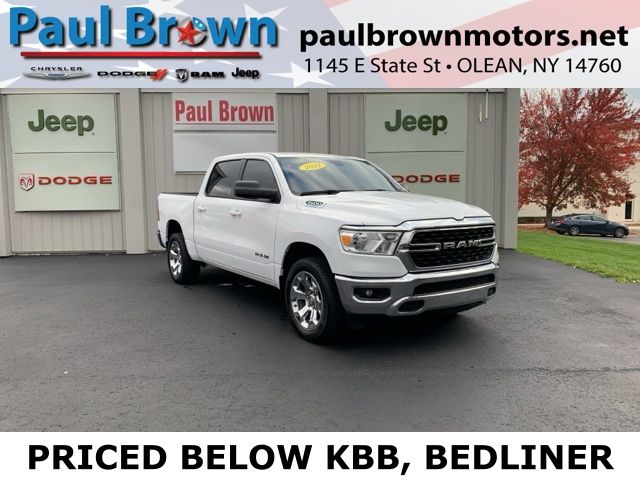 Priced below KBB Fair Purchase Price! Clean CARFAX. We want your trade, ask about Paul Brown Trade discount available to all customers with a trade in! 2022 Ram 1500 Big Horn/Lone Star Odometer is 9882 miles below market average! 4D Crew Cab Bright White Clearcoat 3.6L V6 24V VVT 4WD 8-Speed Automatic Air Conditioning, Cloth Bench Seat, Emergency communication system: SiriusXM Guardian, Front fog lights, Fully automatic headlights, Heated door mirrors, Integrated Voice Command w/Bluetooth, Low tire pressure warning, ParkView Rear Back-Up Camera, Power door mirrors, Power windows, Remote keyless entry, Speed control, Wheels: 20" x 9" Aluminum Chrome Clad (WRK). For a hassle free purchase experience, reach out to the Sales team at Paul Brown Motors at (585) 376-5057. Conveniently located on Route 16 North, Olean NY 14760. We are worth the trip! Travel from over 75 miles away and don't purchase we will supply you with $25 gas card! Paul Brown Motors, A Dealer For the People!