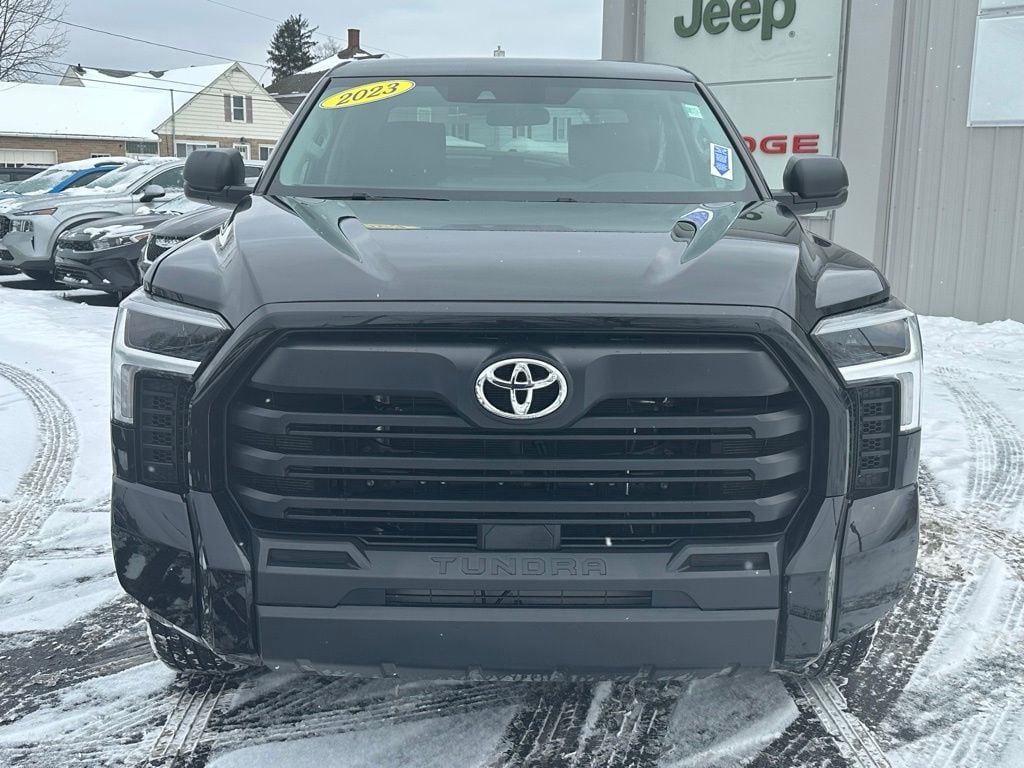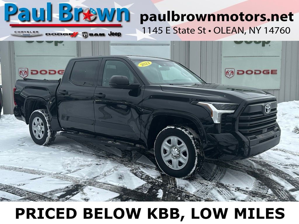 Priced below KBB Fair Purchase Price! CARFAX One-Owner. We want your trade, ask about Paul Brown Trade discount available to all customers with a trade in! 2023 Toyota Tundra SR Odometer is 1151 miles below market average! 4D CrewMax Black 3.4L V6 4WD 10-Speed Automatic Balance of new car warranty., 18" Styled Steel Wheels, Air Conditioning, Apple CarPlay/Android Auto, Emergency communication system: Safety Connect (10-year trial), Exterior Parking Camera Rear, Fabric Seat Trim, Heated door mirrors, Low tire pressure warning, Power door mirrors, Power windows, Rear window defroster, Remote keyless entry, Speed control. For a hassle free purchase experience, reach out to the Sales team at Paul Brown Motors at (585) 376-5057. Conveniently located on Route 16 North, Olean NY 14760. We are worth the trip! Travel from over 75 miles away and don't purchase we will supply you with $25 gas card! Paul Brown Motors, A Dealer For the People!
